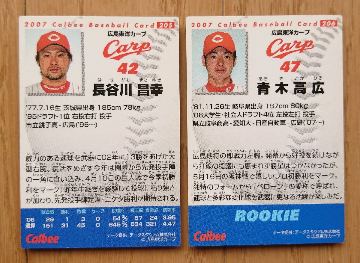 【カード・カルビー2007年】長谷川昌幸 205 / 青木高広 206 計2枚セット 広島東洋カープ カルビープロ野球チップス