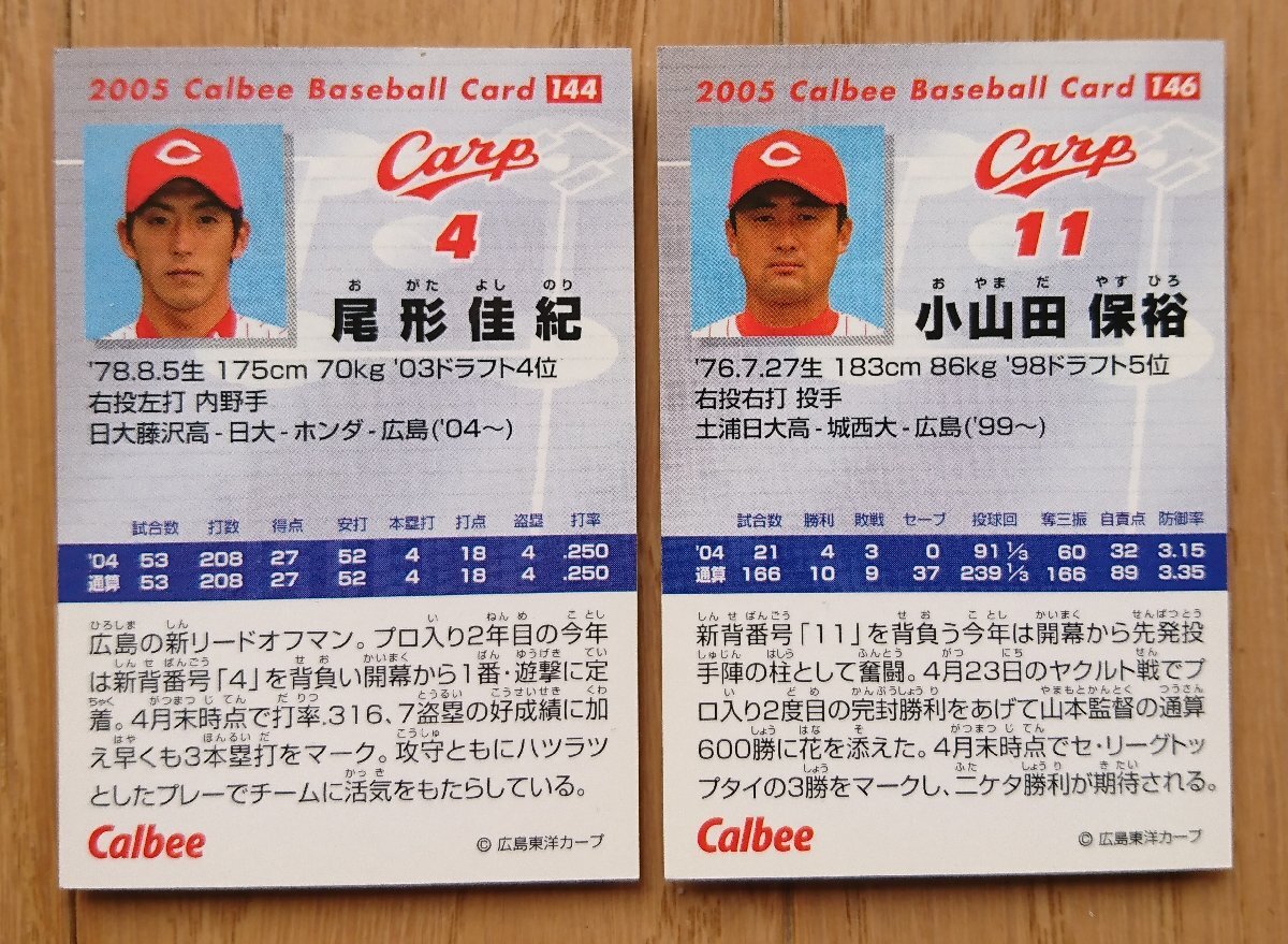 【カード・カルビー2005年】尾形佳紀 144 / 小山田保裕 146 計2枚セット 広島東洋カープ カルビープロ野球チップス