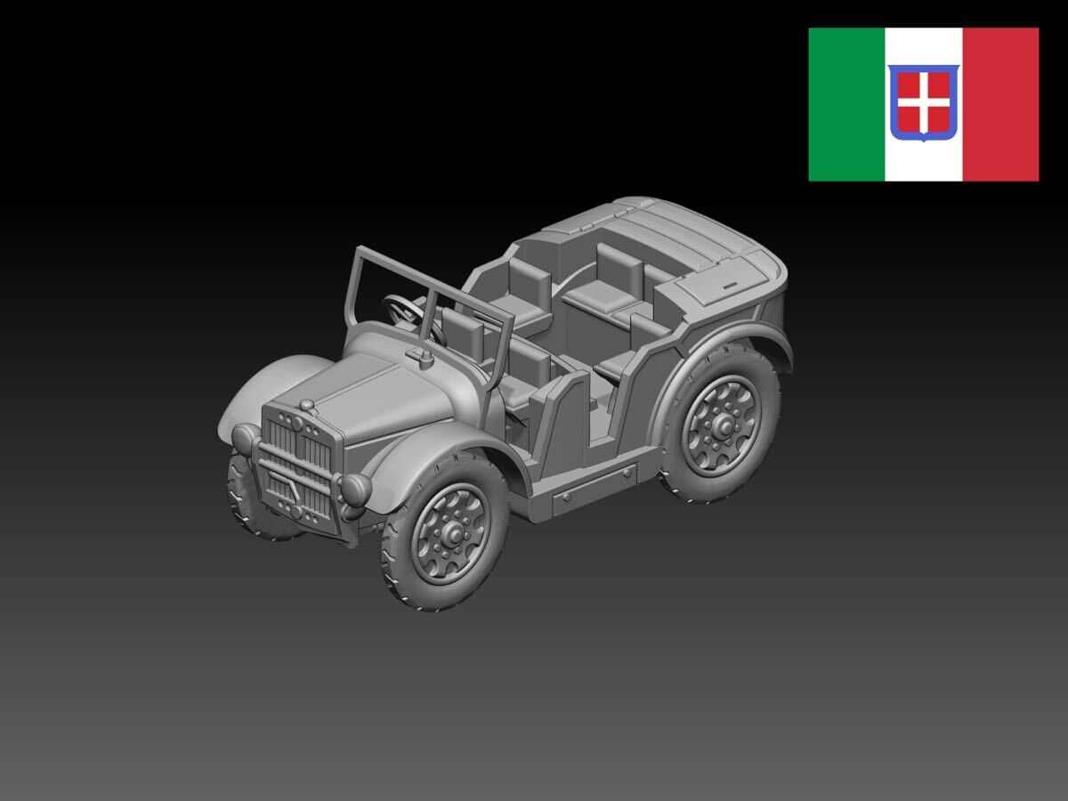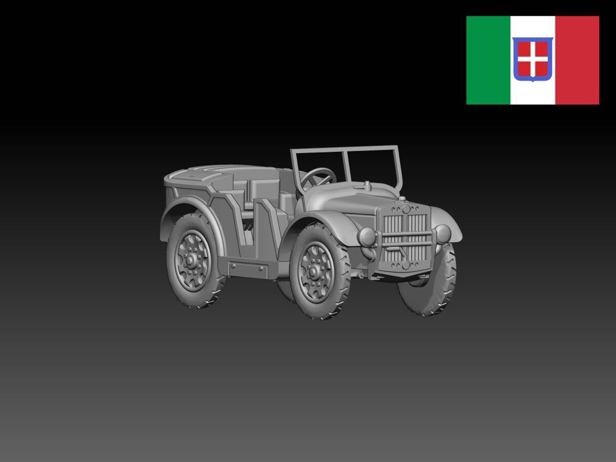 第二次大戦期イタリア軍の代表的軍用車両:TL.37はイタリア王国陸軍が広く使用した4輪駆動の軽乗用車で、偵察・連絡・牽引など多用途に活躍した名車両です。