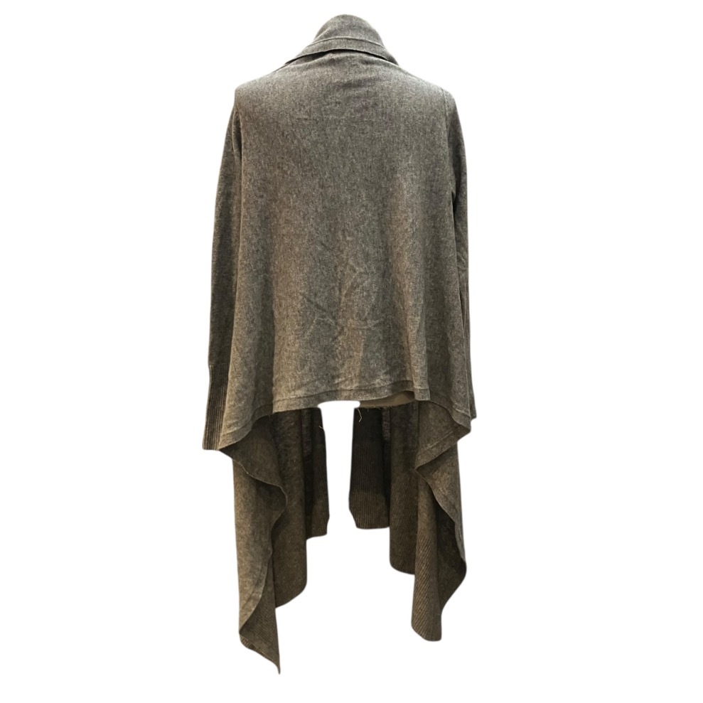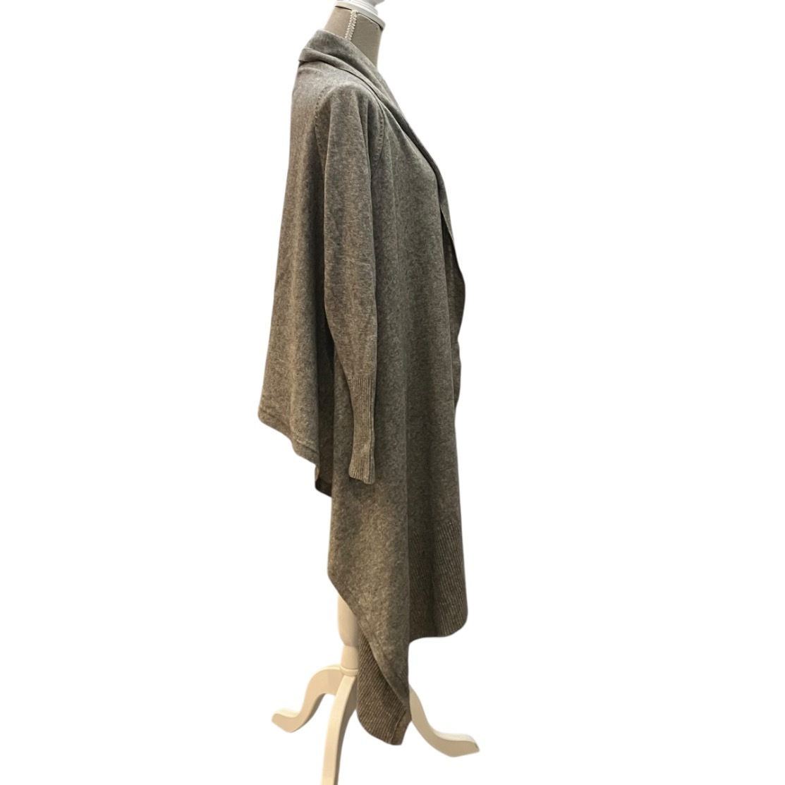 ダナキャランニューヨーク DKNY ロングカーディガン 変形 ボタンレス カシミヤ混 無地 ウール S グレー STK レディース