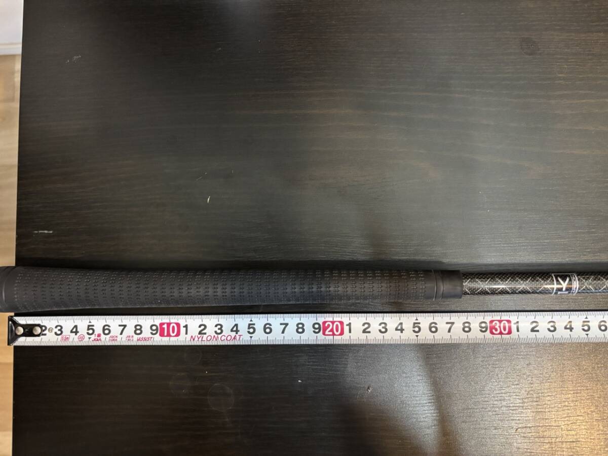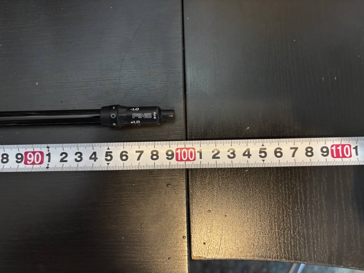 • こちらの計測で長さは99.3cmで、PING社4HYのカーボン純正品とほぼ同じ、手持ちG440の4HY装着時の総重量約356.8g、バランス約D0.1といったところです。