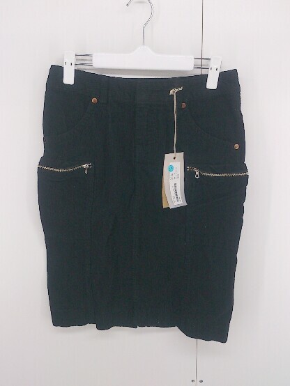 ◇ ◎ ●未使用● RNA アールエヌエー タグ付き 無地 コーデュロイ 膝丈 タイト スカート サイズS ブラック レディース E