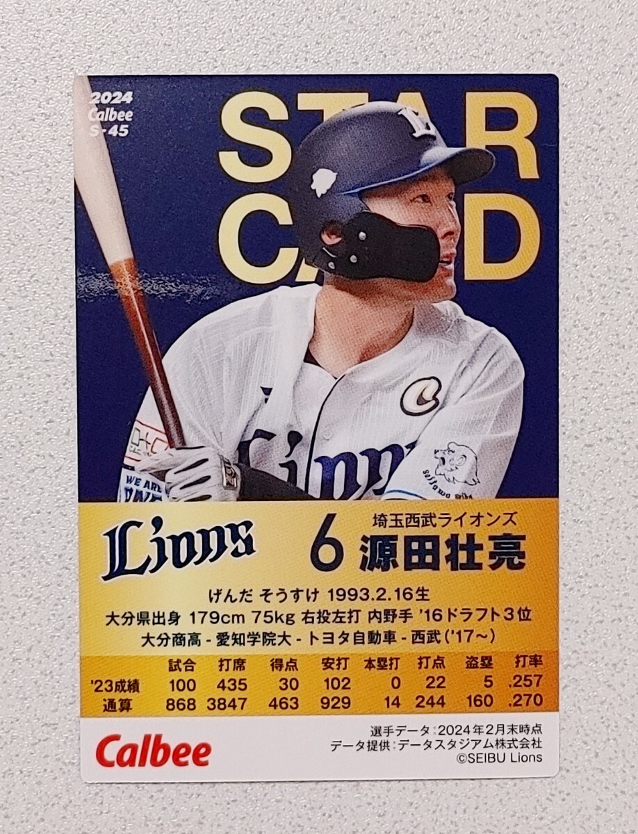 ◆スターカード S-45 埼玉西武ライオンズ 源田壮亮