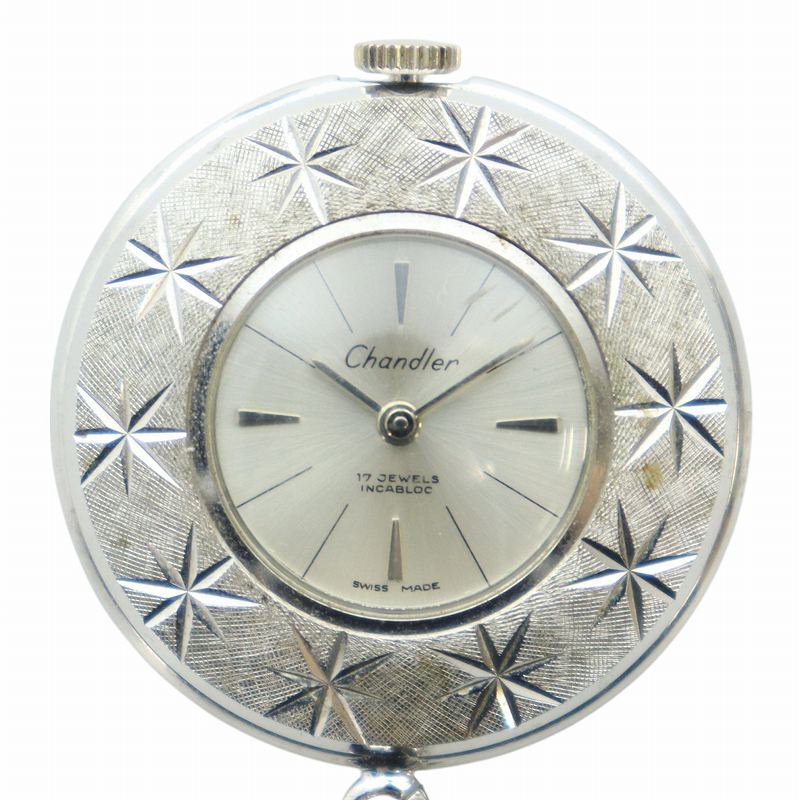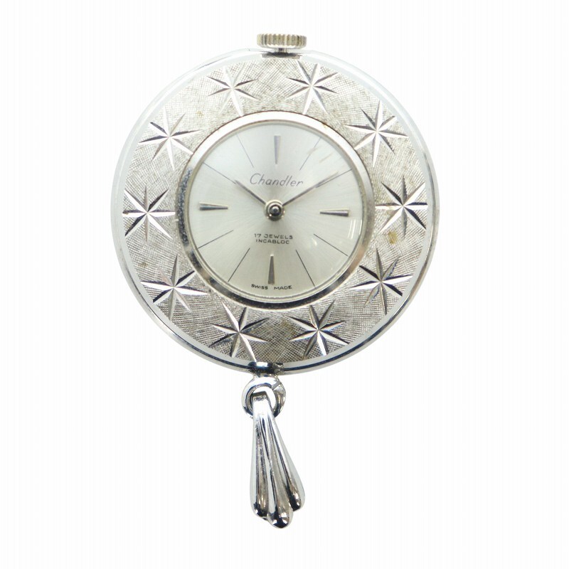 チャンドラー Chandler ジャンク品 ペンダントウォッチ 手巻き ロゴ 17石 シルバー色 ■GY18 /MQ レディース