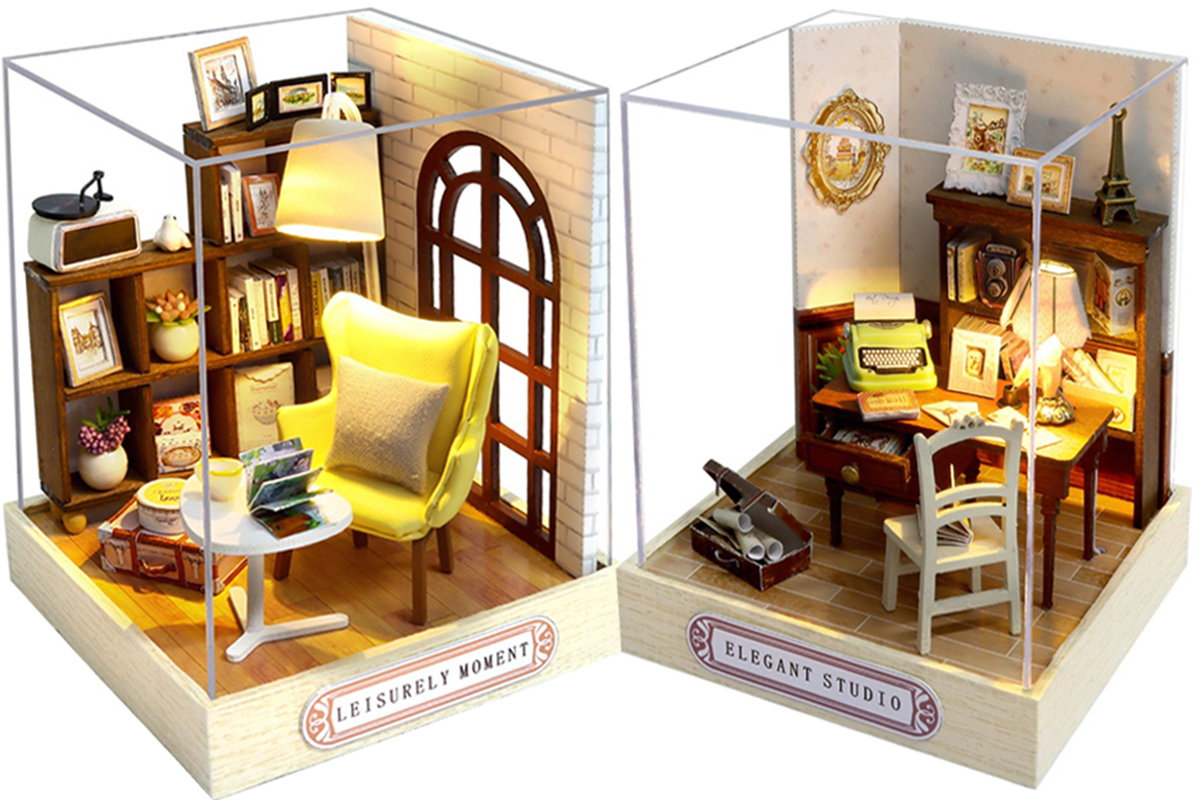 送料無料◆DIYドールハウス ミニチュア★手作りキットセット happinessシリーズ (Elegant Studio QT-031+Leisurely Moment QT-37)2種セット