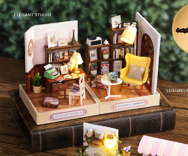 ★☆送料無料◆DIYドールハウス ミニチュア★手作りキットセット happinessシリーズ (Elegant Studio QT-031+Leisurely Moment QT-37)2種セット☆★
