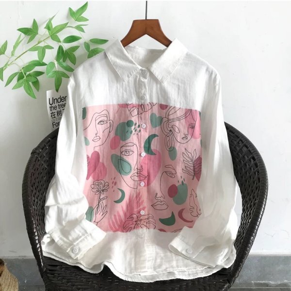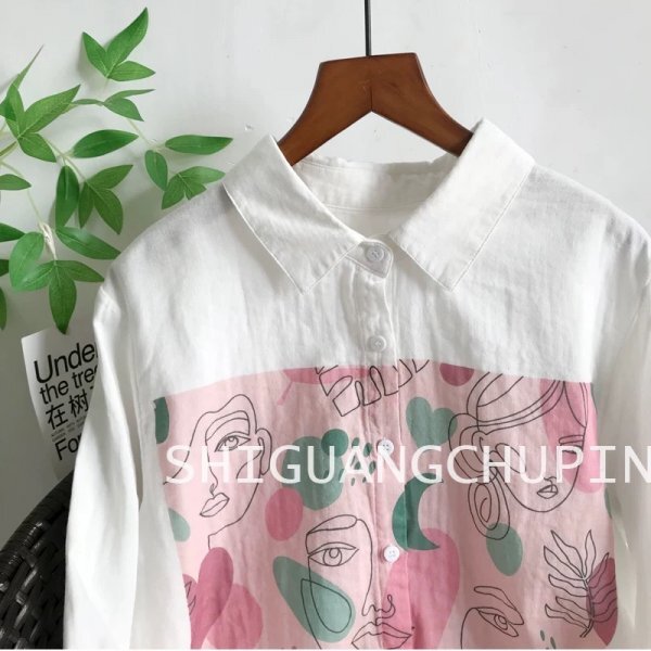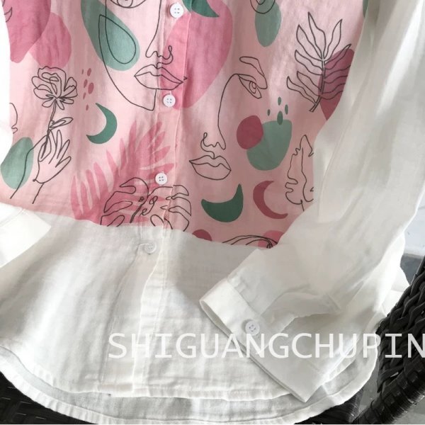 sg プリント柄 フリーサイズ ワイシャツ チュニック トップス ダブルガーゼ 綿100% 大人可愛 柄2