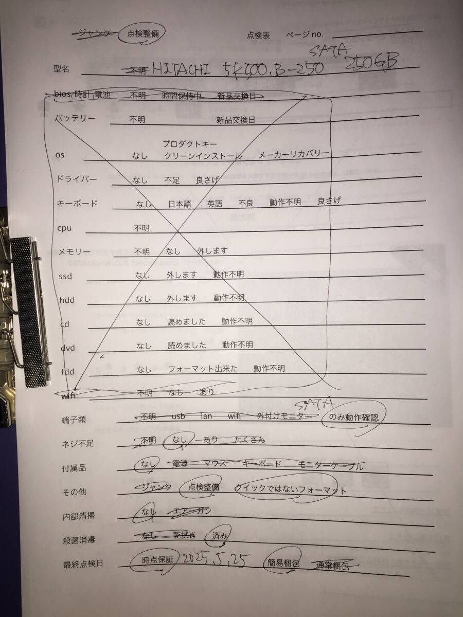 170サイズ詰め放題、未チェックジャンク扱い/Hitachi 2.5インチ sata hdd 5k500.b-250 250gb クイックではないフォーマット済み