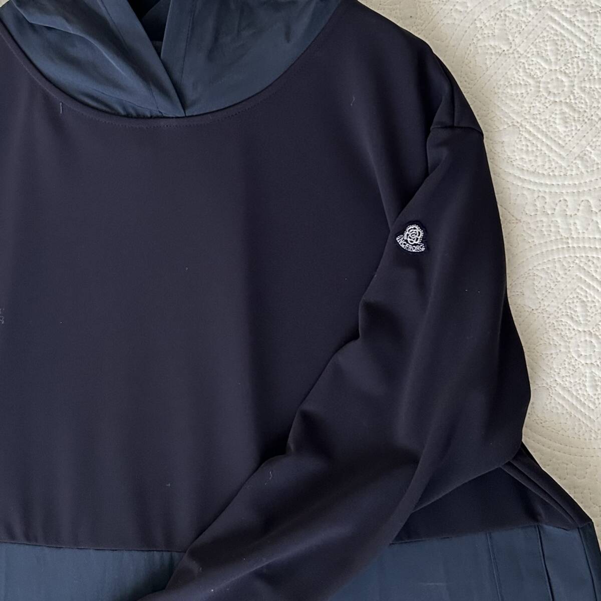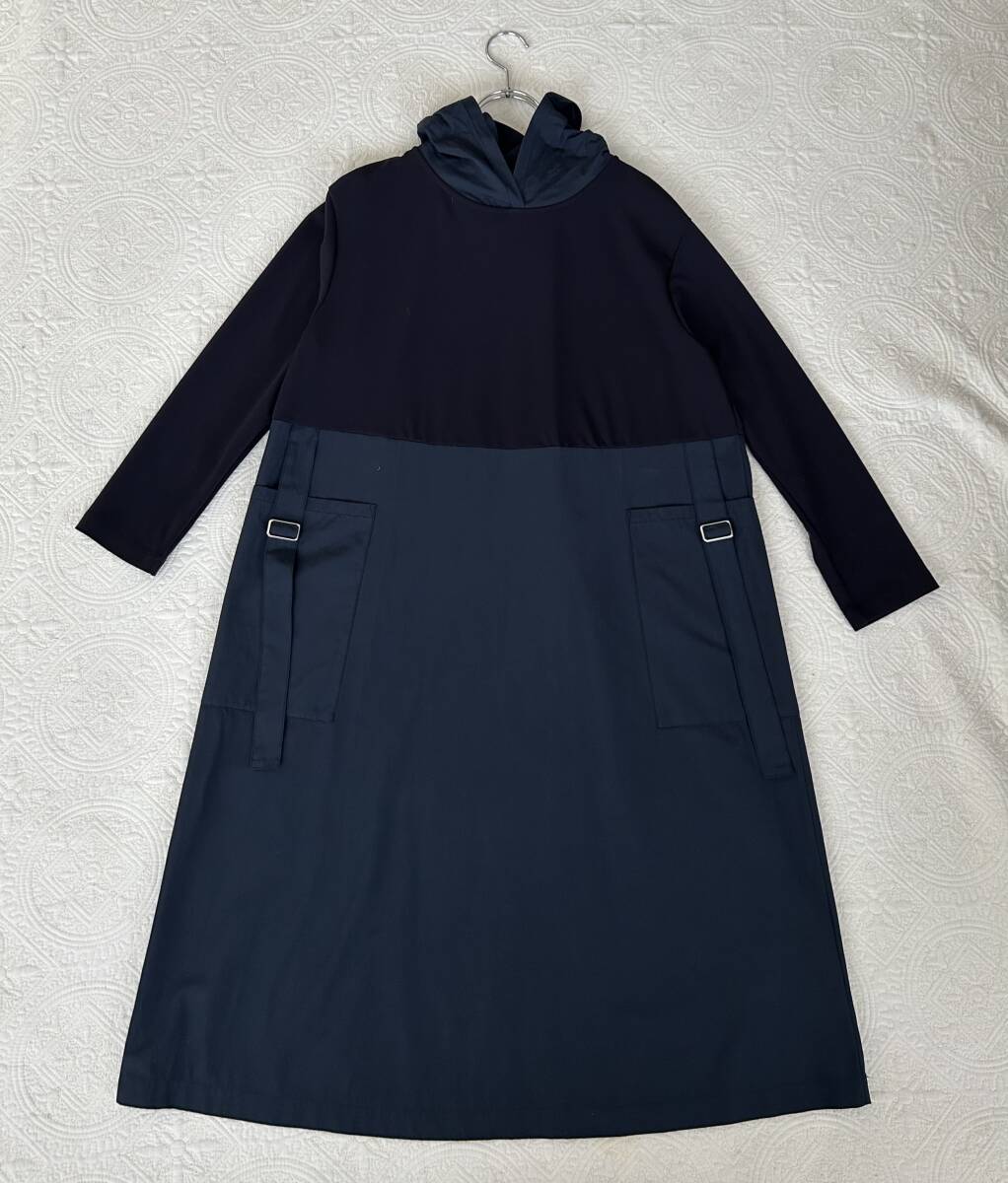 INGEBORG インゲボルグ Collection .。.:*:.。..。.:*:.。..。.:*:.。. マットストレッチポンチとポリエステル素材がハイブリッドになったフーディチュニックになります。 身頃はストレッチポンチで動きやしく、フードとスカート部分がポリエステル素材。 左袖にカメリア&ロゴワッペン付。 前身切替下、大きめなアウトポケットにデザインされた共布ベルトを少しだけたくし上げて、スタイルの変化をお楽しみ頂けます。 .。.:*:.。..。.:*:.。..。.:*:.。. ■カラー:ネイビー ■サイズ:フリーサイズ ■採 寸:着丈101.5 身幅55 肩幅47 袖丈51.5 (単位cm/サイズは目安です。素人採寸の為、誤差はお許しください。) ■素 材:本体)ポリエステル 100% 別布) ポリエステル 98% ポリウレタン 2% ■状 態:1回試着のみ ◎ホームクリーニング済 ポリエステル部分のシワあり ■購入金額:49,500円 | |