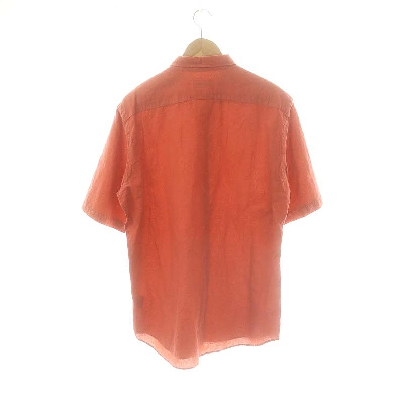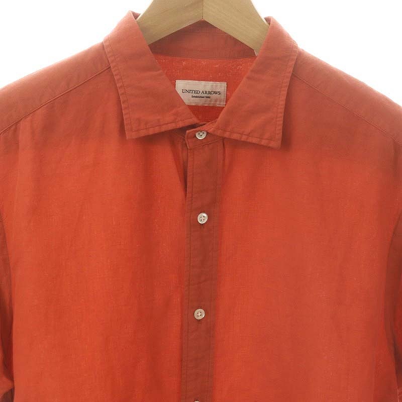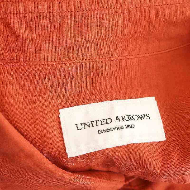 ユナイテッドアローズ UNITED ARROWS コットンリネンレギュラーシャツ 五分袖 スタンドカラー L オレンジ /AT ■OS メンズ