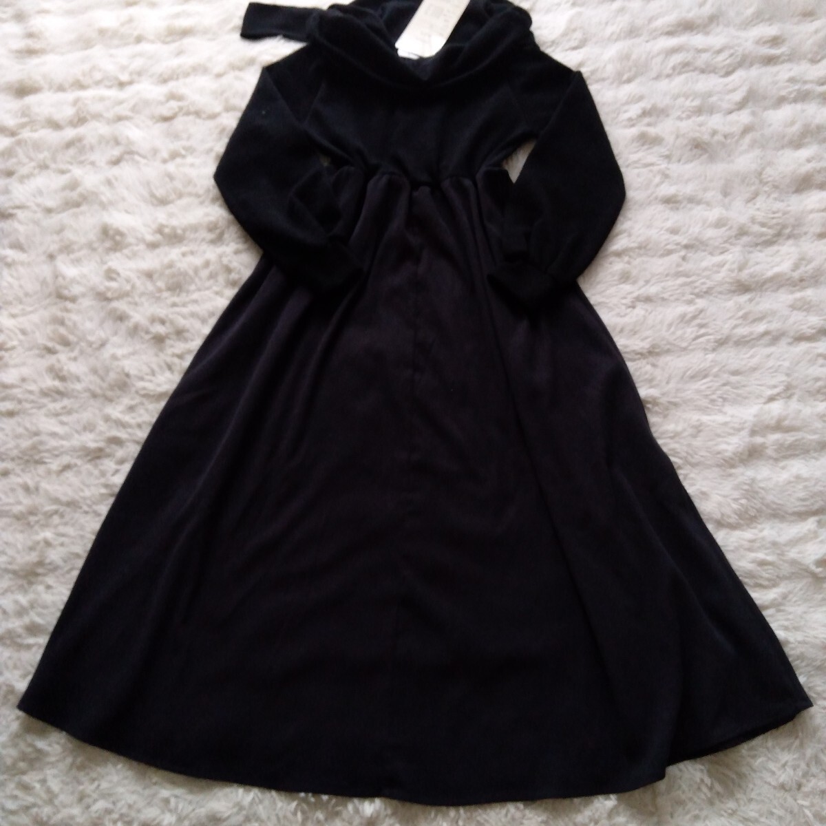新品タグ付きです。ニットとスウェードっぽいスカートの切り替えワンピースです。色は黒、サイズはM、着丈111cm、切り替え部分は30cm、伸びます。自宅保管の為、気がつかない点があるかもしれません。そのことを考慮した上で、ノークレームノーリターンでよろしくお願いいたします。