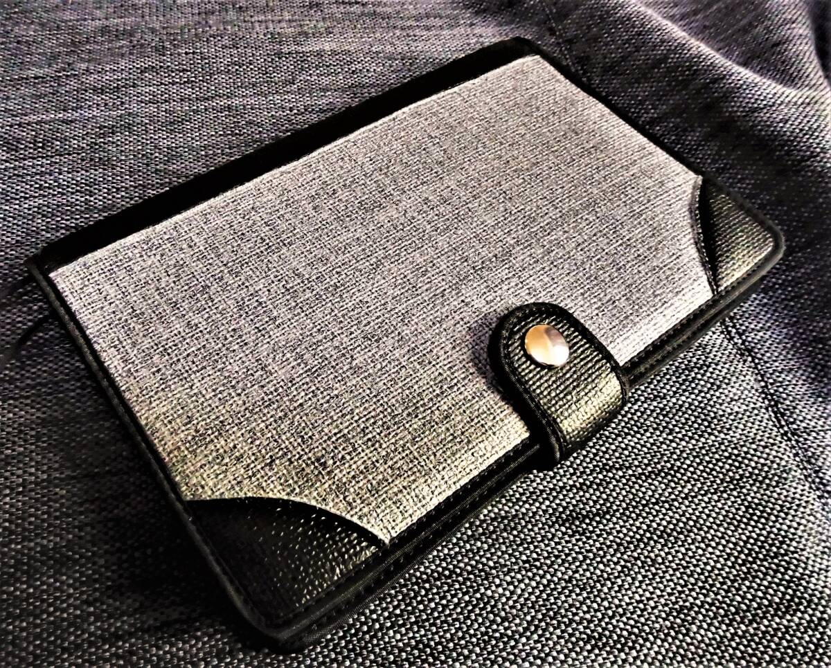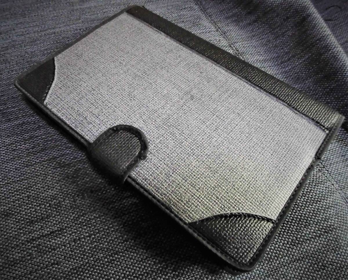 オーダーメイド【背表紙付きB6サイズノートカバー】4隅黒■合皮サニー■グレー/黒