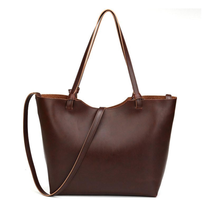 レザー レディース トートバッグ  ショルダーバッグ  取り外し可能なポーチ付き ブラック ブラウン