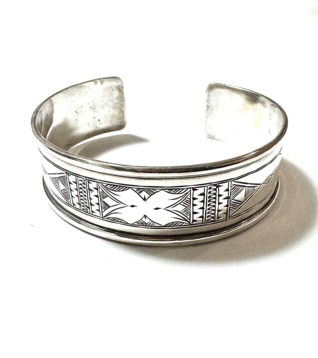 こちらのバングルは着けやすく、ちょうど良い幅のバングルです。トゥアレグ族の象徴的な柄が彫られていて、