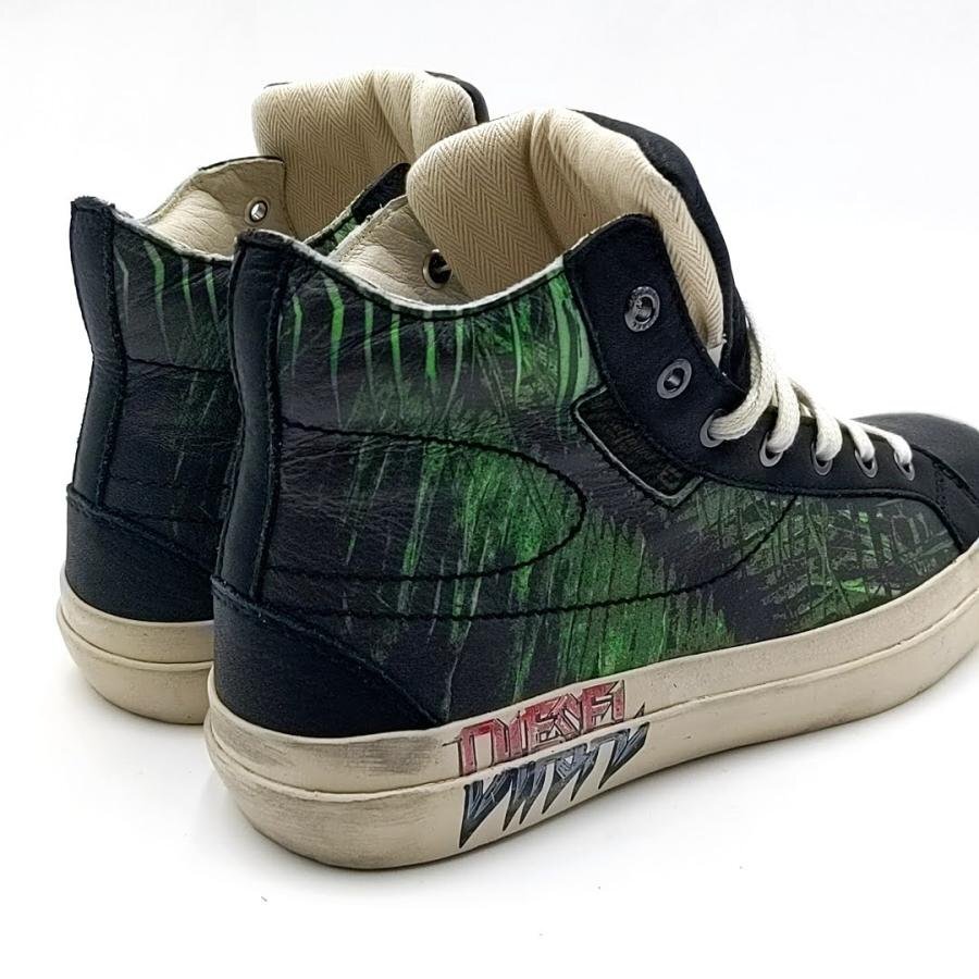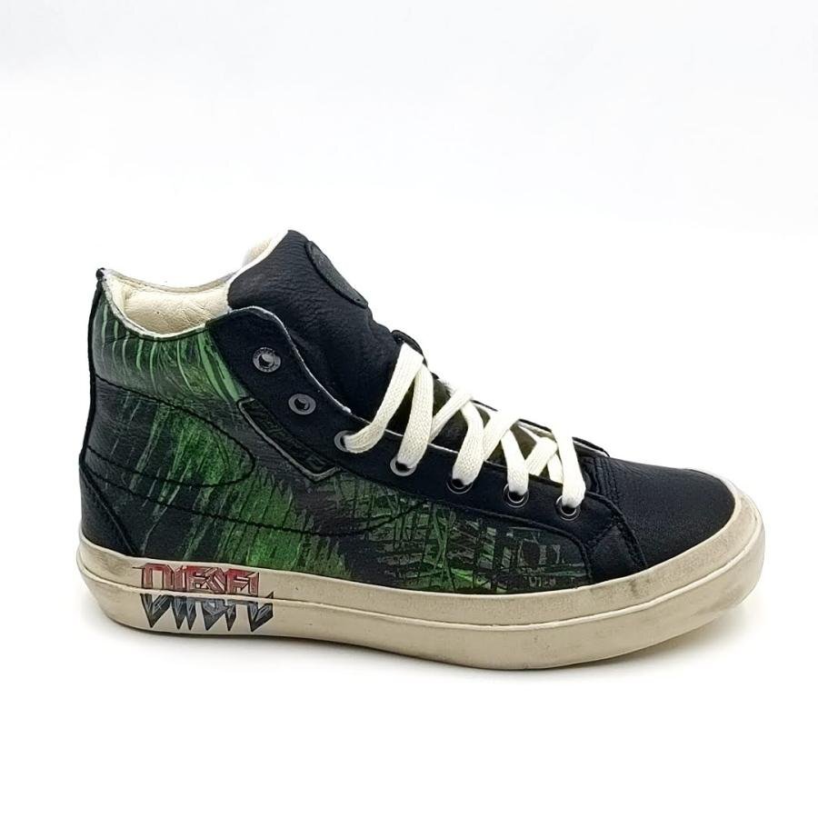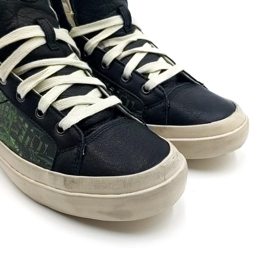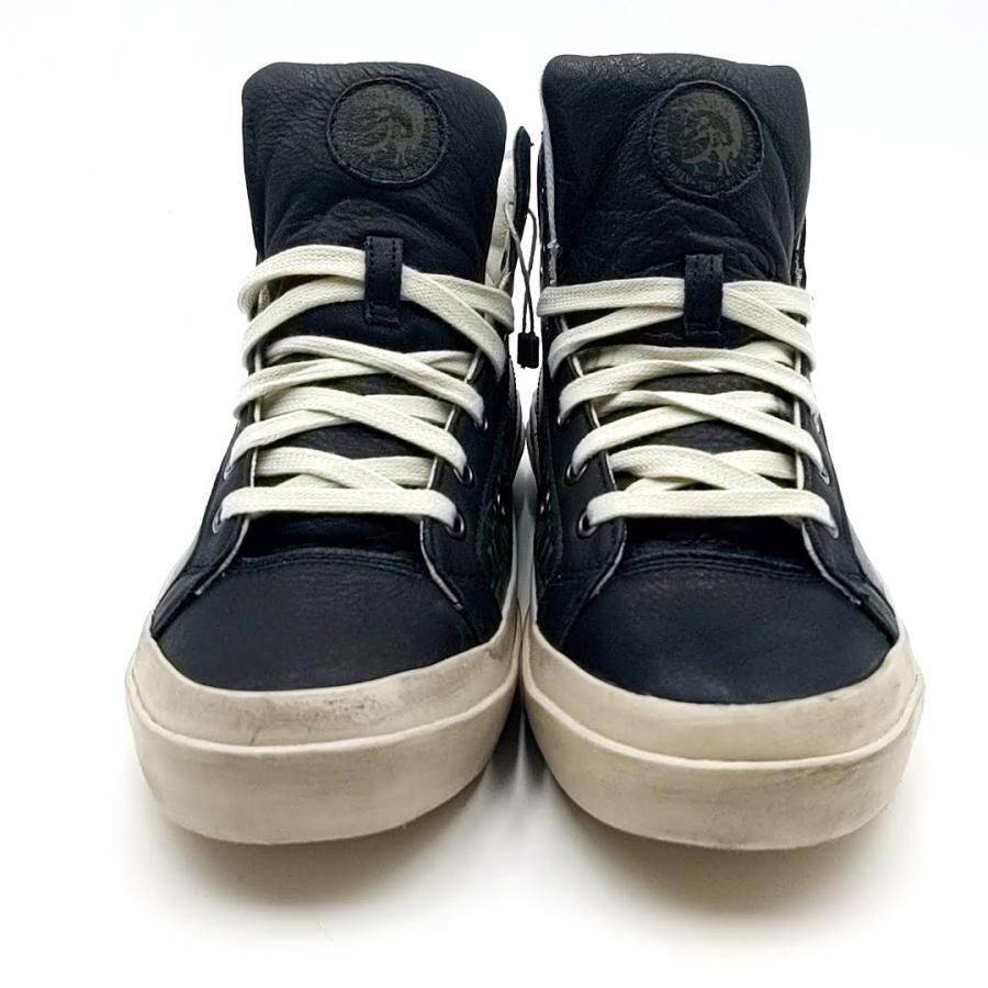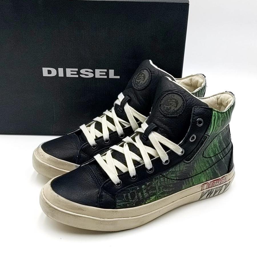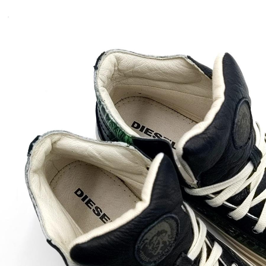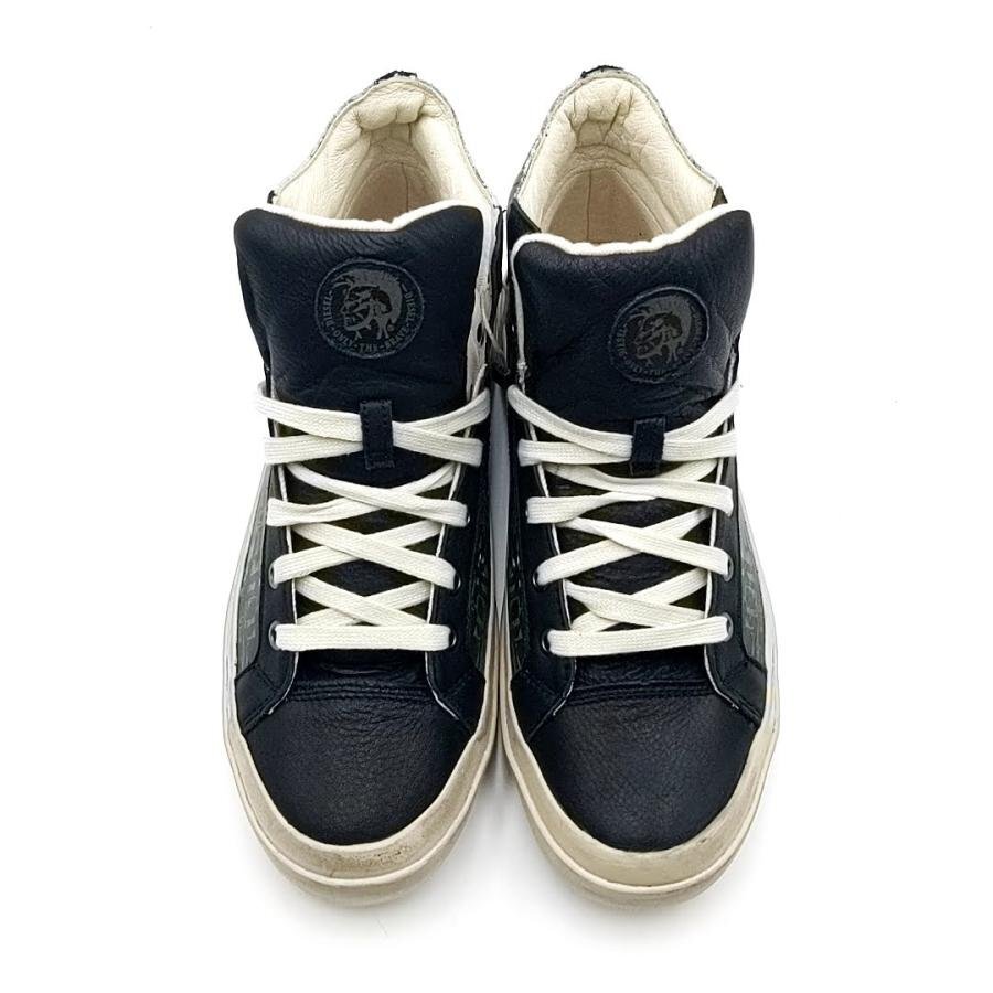 送料無料 超美品 ディーゼル DIESEL スニーカー 靴 シューズ ハイカット レザー 25.5cm 黒 ブラック系 メンズ