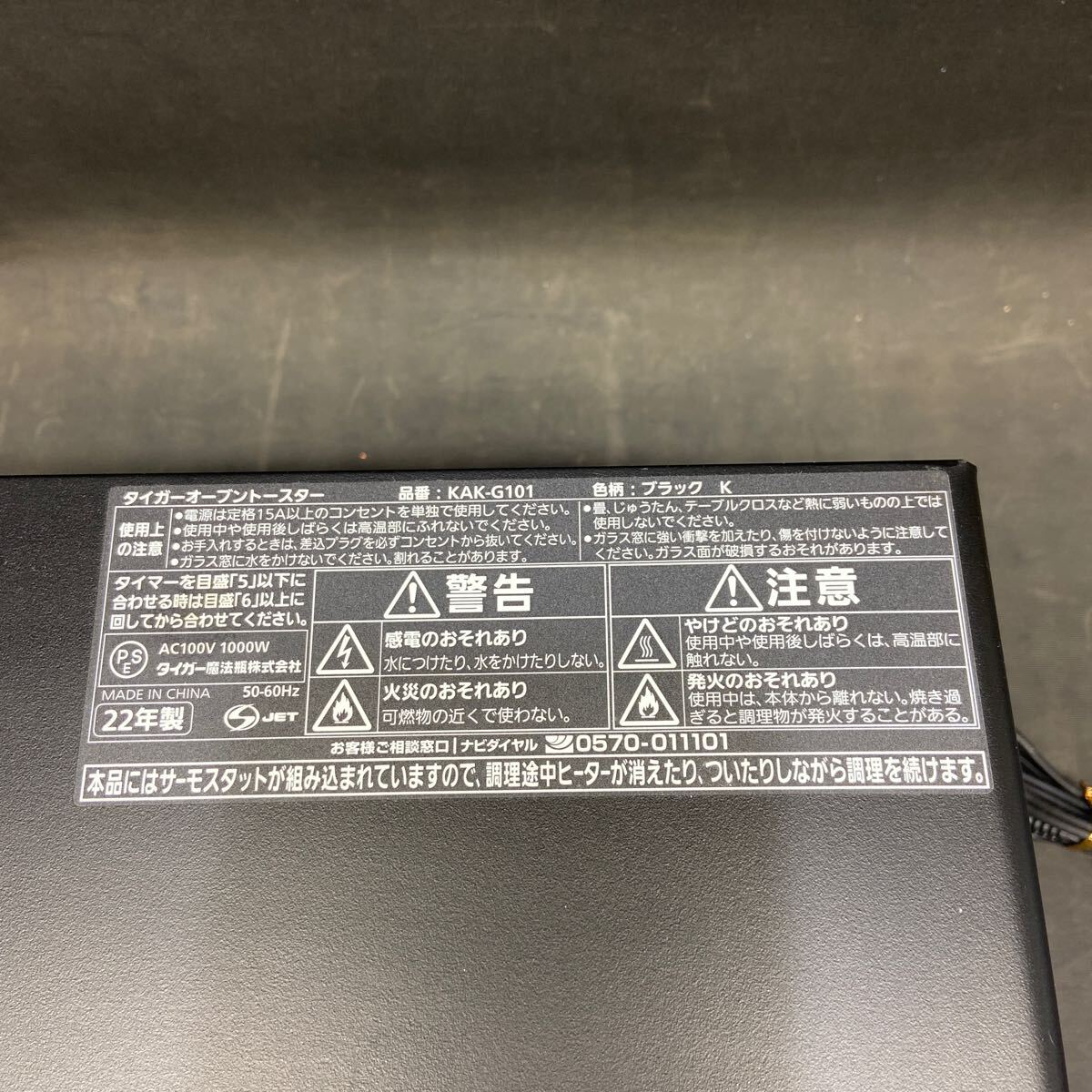 【TIGER オーブントースター】 動作確認済み 2022年製 タイガー マットブラック KAK-G101 トレー欠品 中古 現状品
