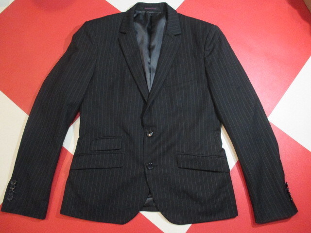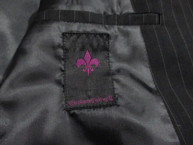 激シブ CUSTOM CULTURE 細身 ストライプ テーラードジャケット 日本製 カスタムカルチャー クリーニング済み ROCKNROLL PUNK ROCKABILLY ROCKERS MODS モッズ エースカフェ ラルフローレン RRL セディショナリーズ 666 ルーディーズ キングモブ