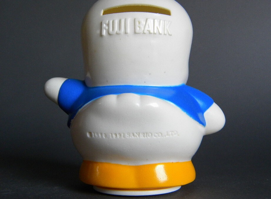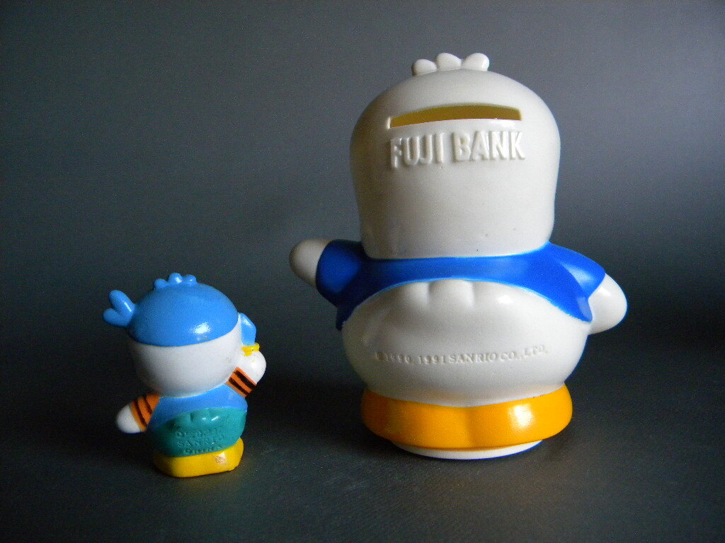 ●当時物 ★★あひるのペックル sofvi 2P コインバンク 貯金箱 !! ソフビ SANRIO 富士銀行 おまけ景品 サンリオ 鳥★★未使用 デッドストック