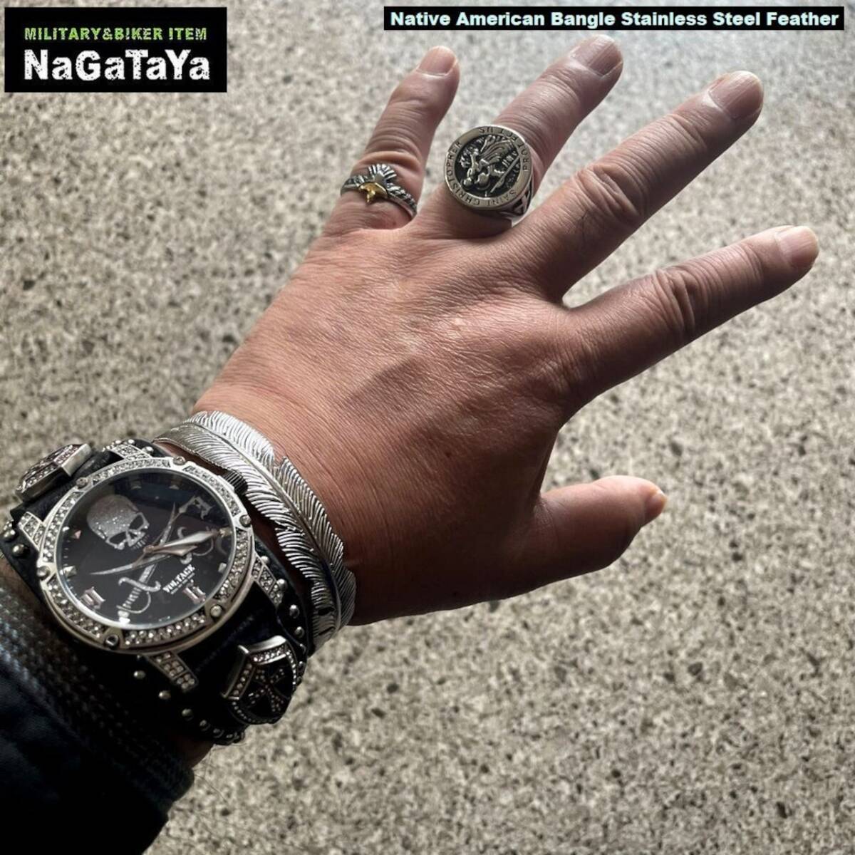 ★ ネイティブアメリカン ステンレス スチール フェザー バングル GSSB-015AB フリーサイズ ★