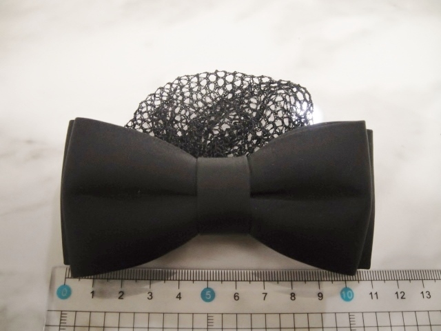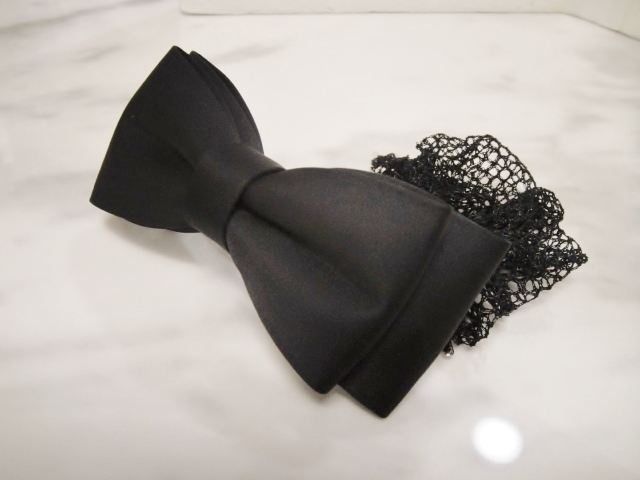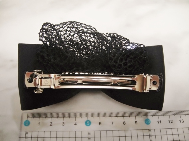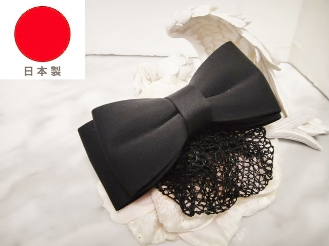 ♪ 新品 日本製 Made in Japan バレッタ/ネット付き『高品質/シルク/3Dダブルリボン/パールブラック』♪
