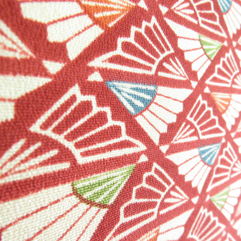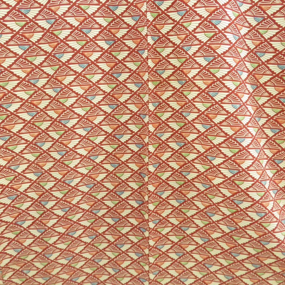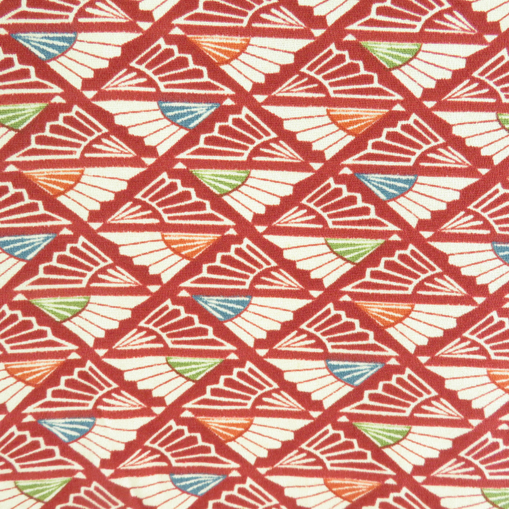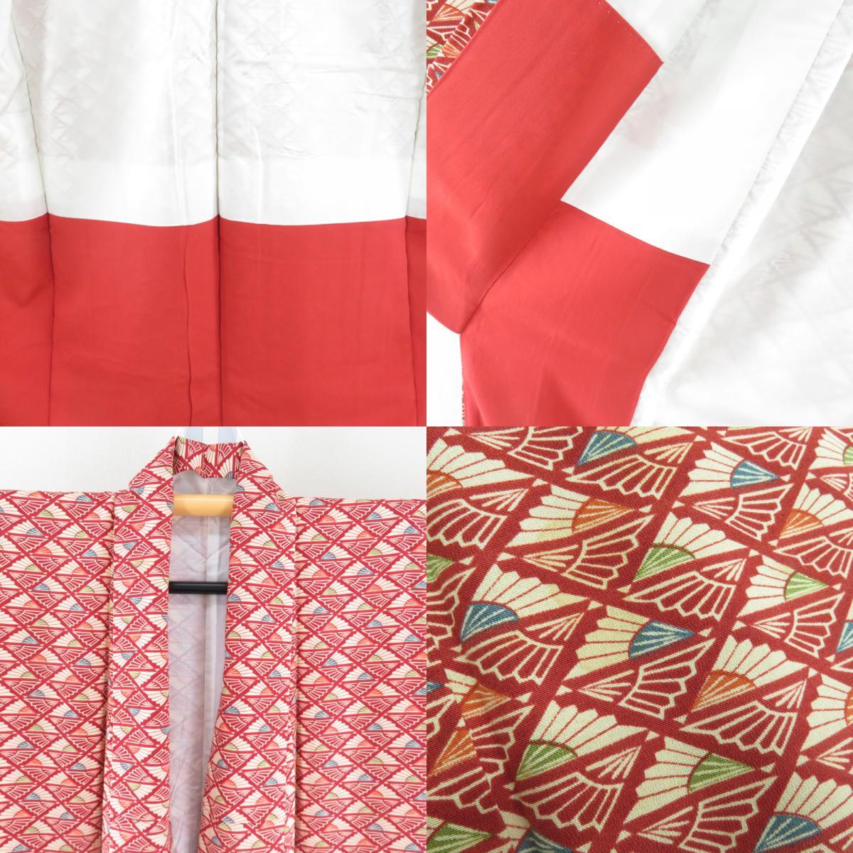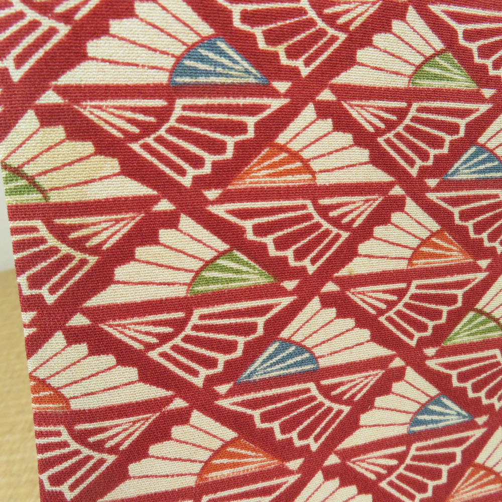 | 小紋 向かい扇模様 朱色x多色 正絹 広衿 仕立て上がり着物 身丈163.5cm |