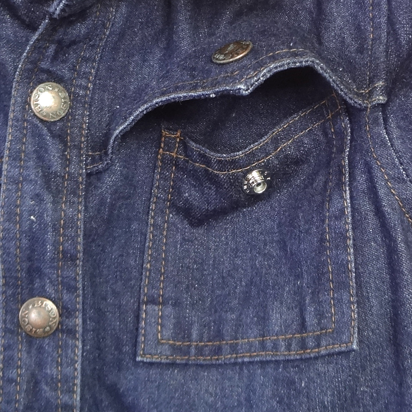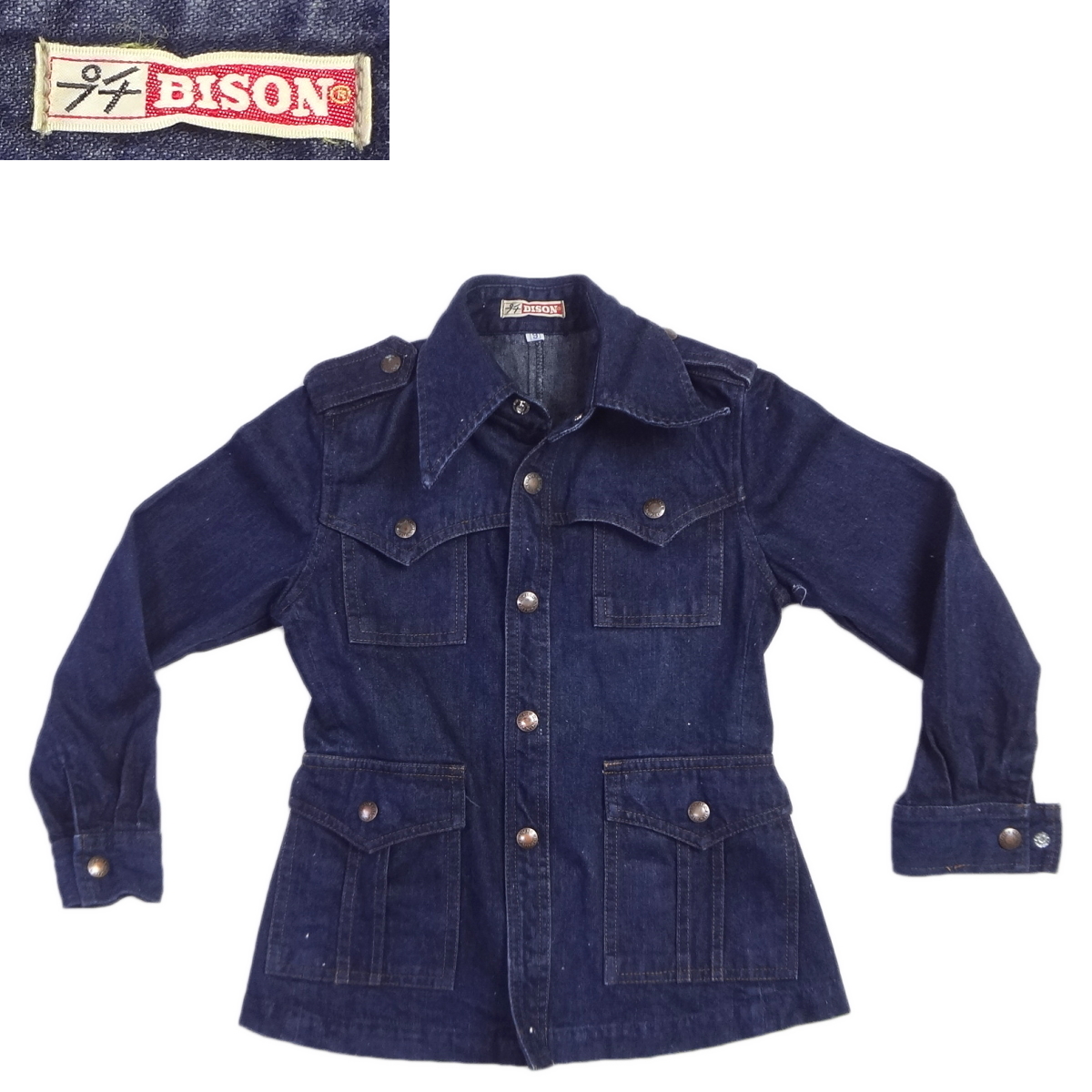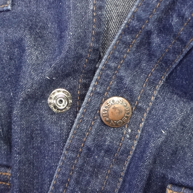 バイソンBISONのジージャン、実店舗の店頭展示品を1度洗濯しただけの未使用品、インディゴブルーデニムハーフジャケット