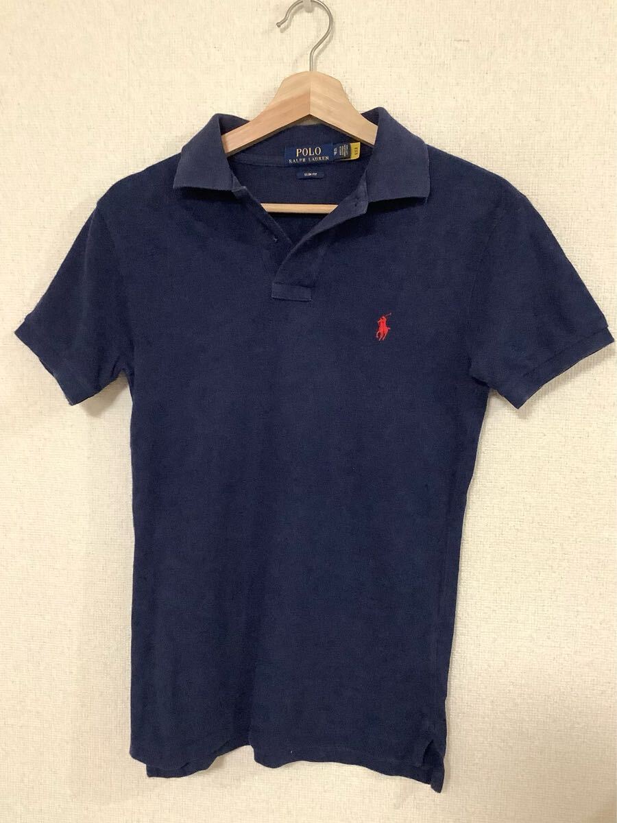 POLO RALPH LAUREN ラルフローレン スリムフィット 半袖ポロシャツ ネイビー セレクト カジュアル メンズ 古着 XS