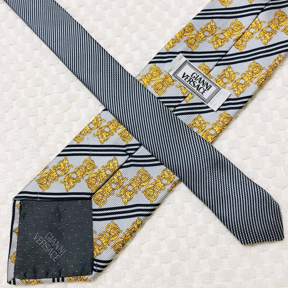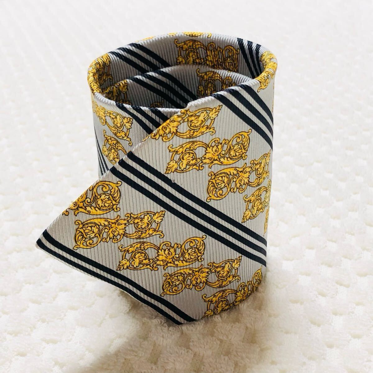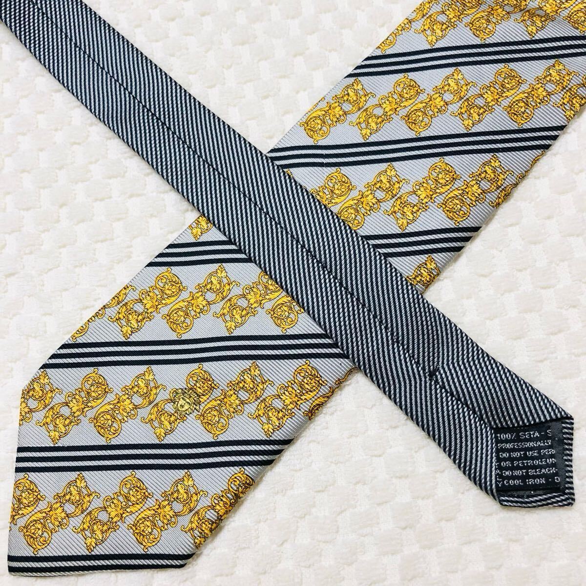 スカーフ柄 レジメンタルストライプ メデューサ 黄金装飾 総柄
