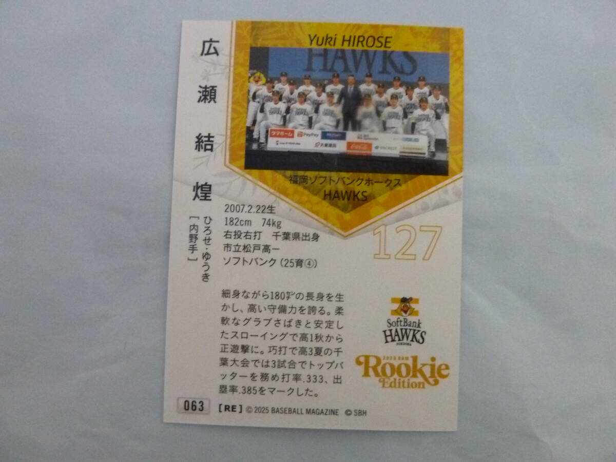BBMルーキーエディション 2025 広瀬結煌♯127 直筆サインカード 福岡ソフトバンクホークス 激レア