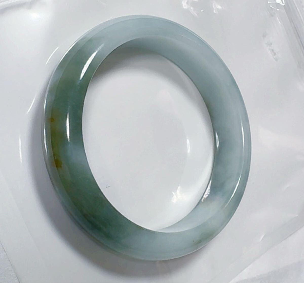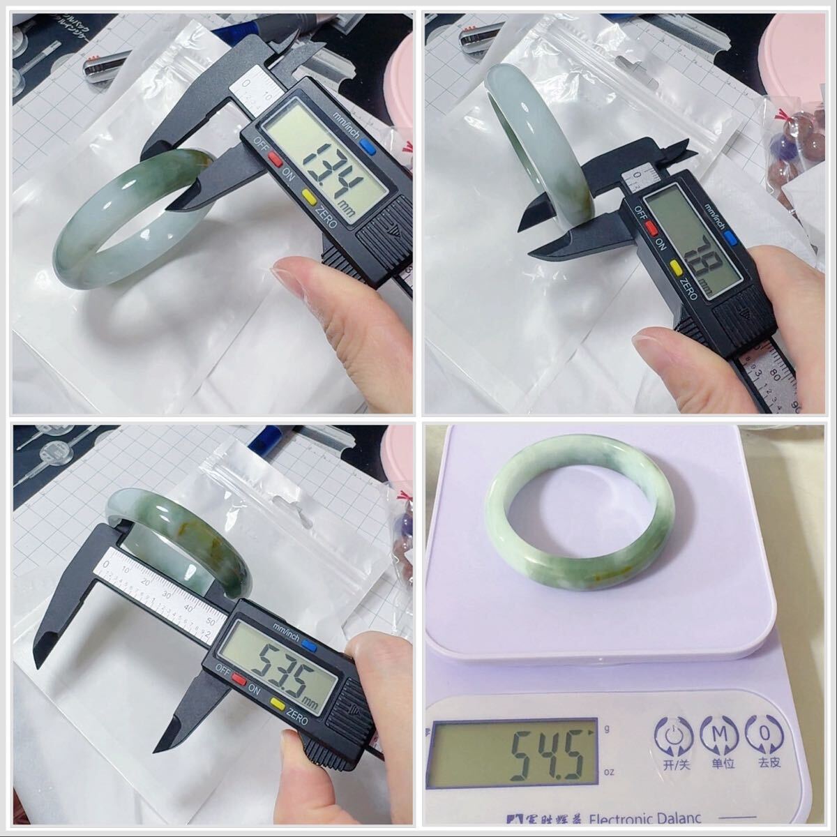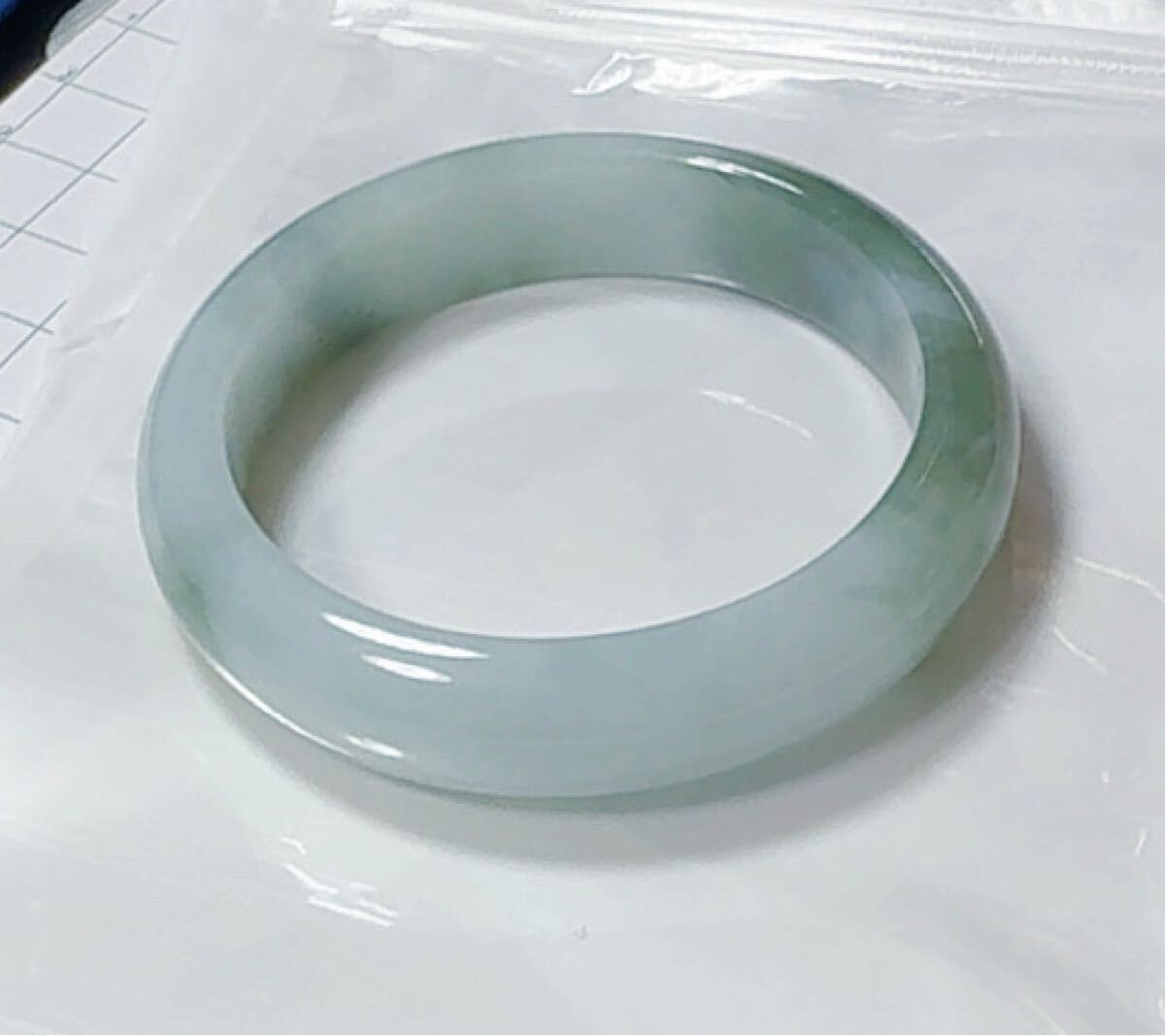 R2-01147 天然本翡翠《本物保証》 ヒスイ Aジェダイト バングル 半円形53.5mm 一点物 希少 縁起物 お守り パワーストーン ミャンマー産