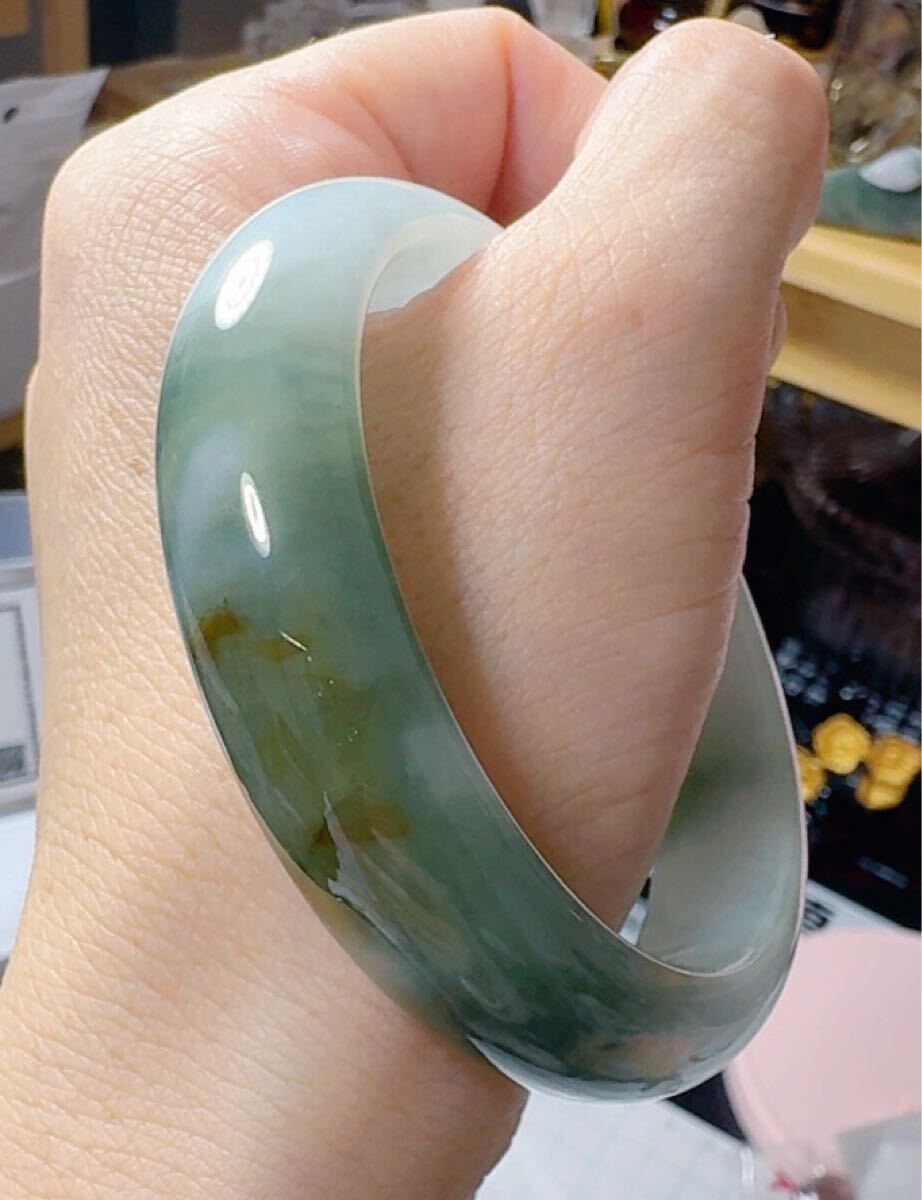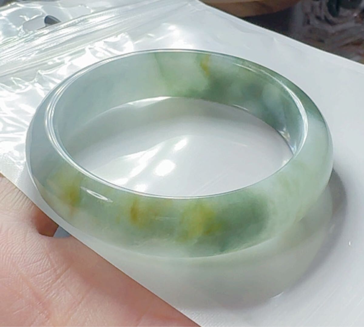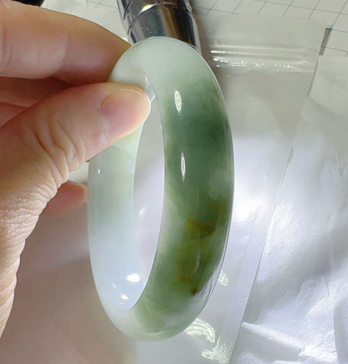 R2-01147 天然本翡翠《本物保証》 ヒスイ Aジェダイト バングル 半円形53.5mm 一点物 希少 縁起物 お守り パワーストーン ミャンマー産