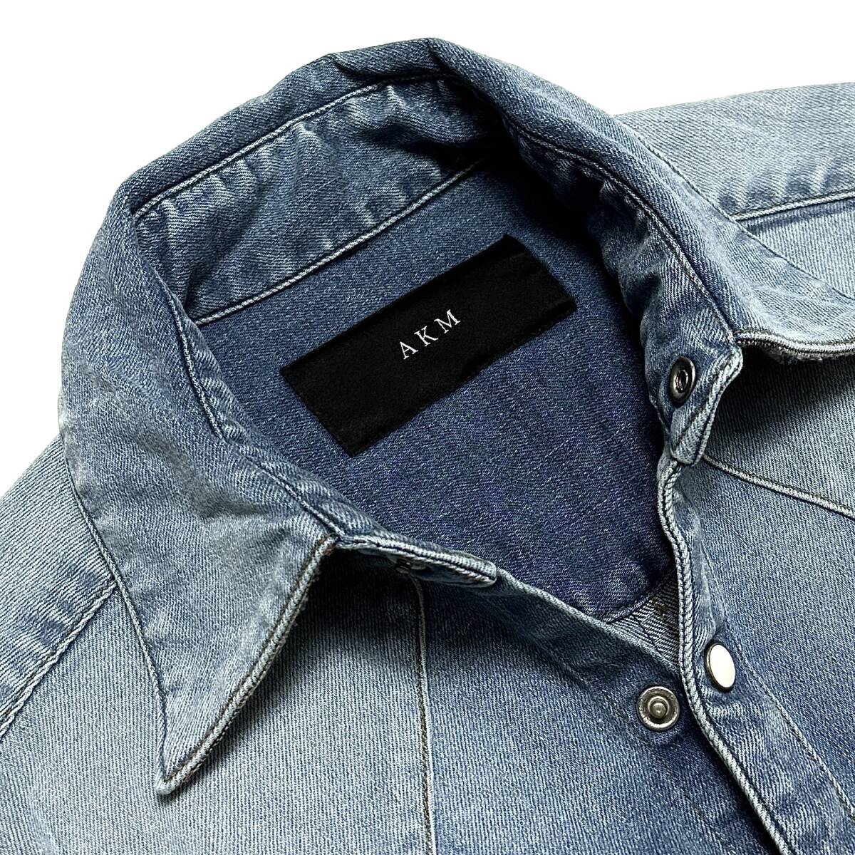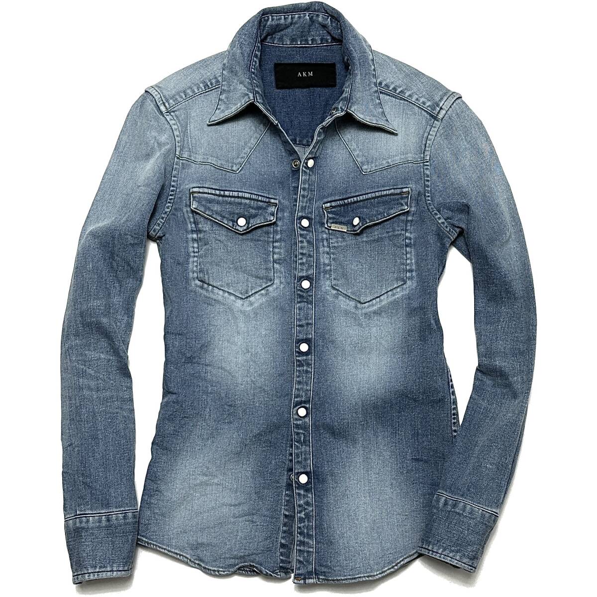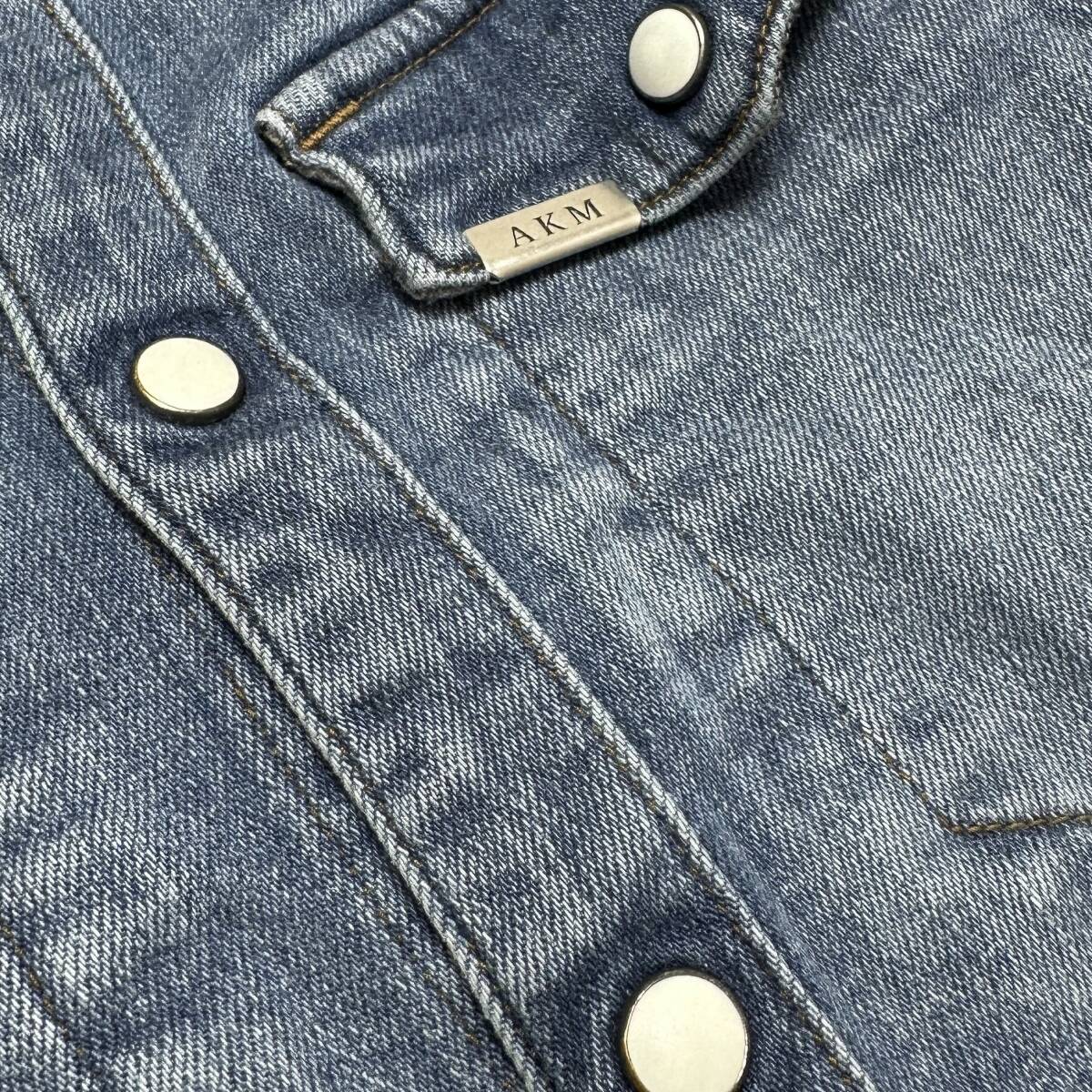 定価5.8万 AKM 8oz STRETCH DENIM BLANKET WESTERN SHIRTS S ブルー ストレッチデニムウエスタンシャツ wjk ジュンハシモト