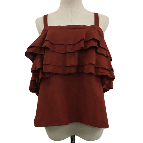 ドロシーズ DRWCYS キャミソール ブラウス ティアード 無地 リネン ノースリーブ 1 赤 レッド レディース