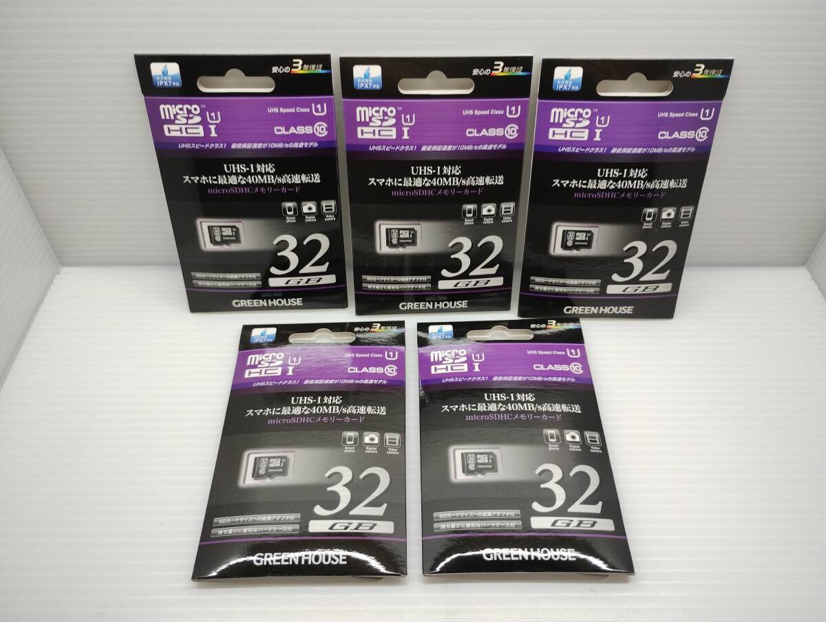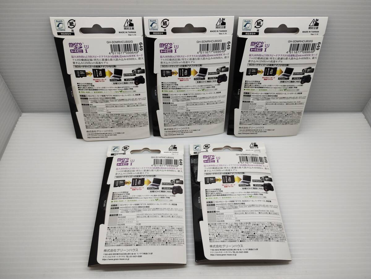 5枚セット 未開封品・未使用品 microSDHCカード 32GB GREEN HOUSE 変換アダプター付き メモリーカード microSDカード