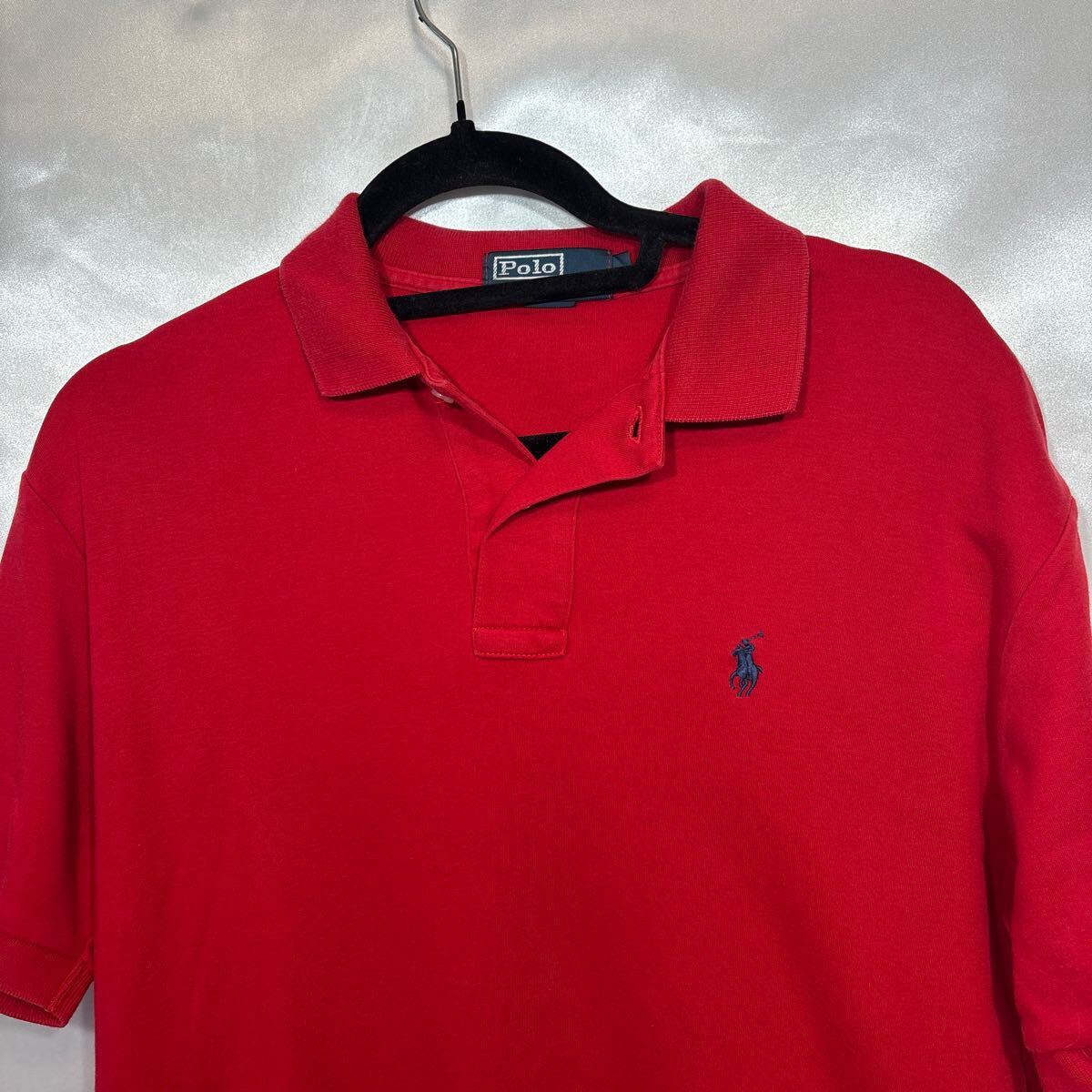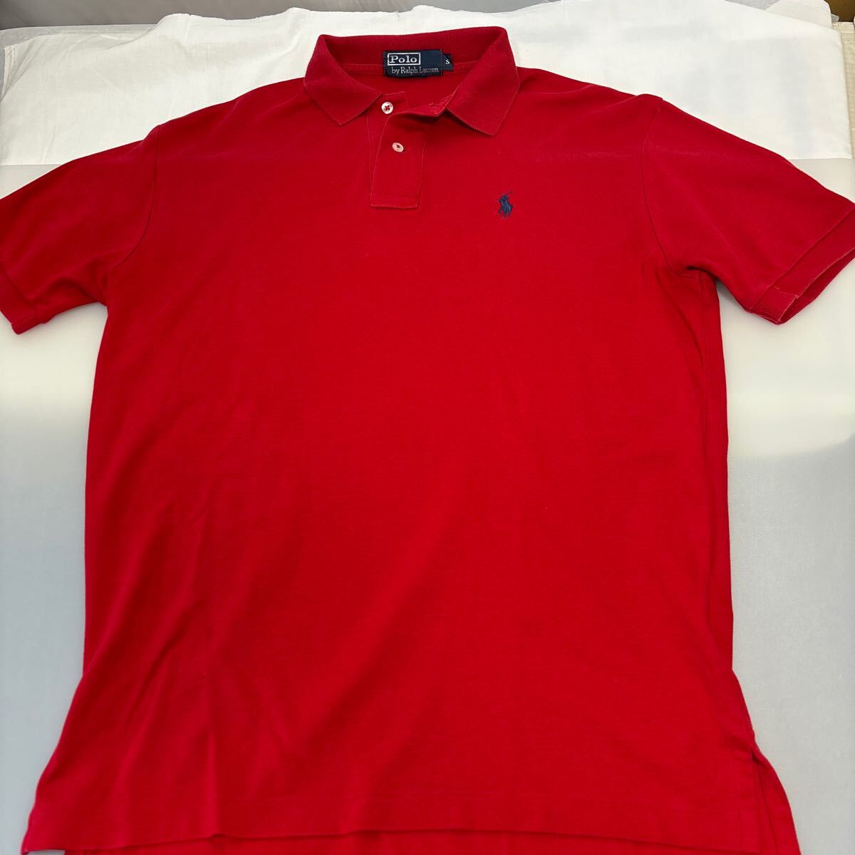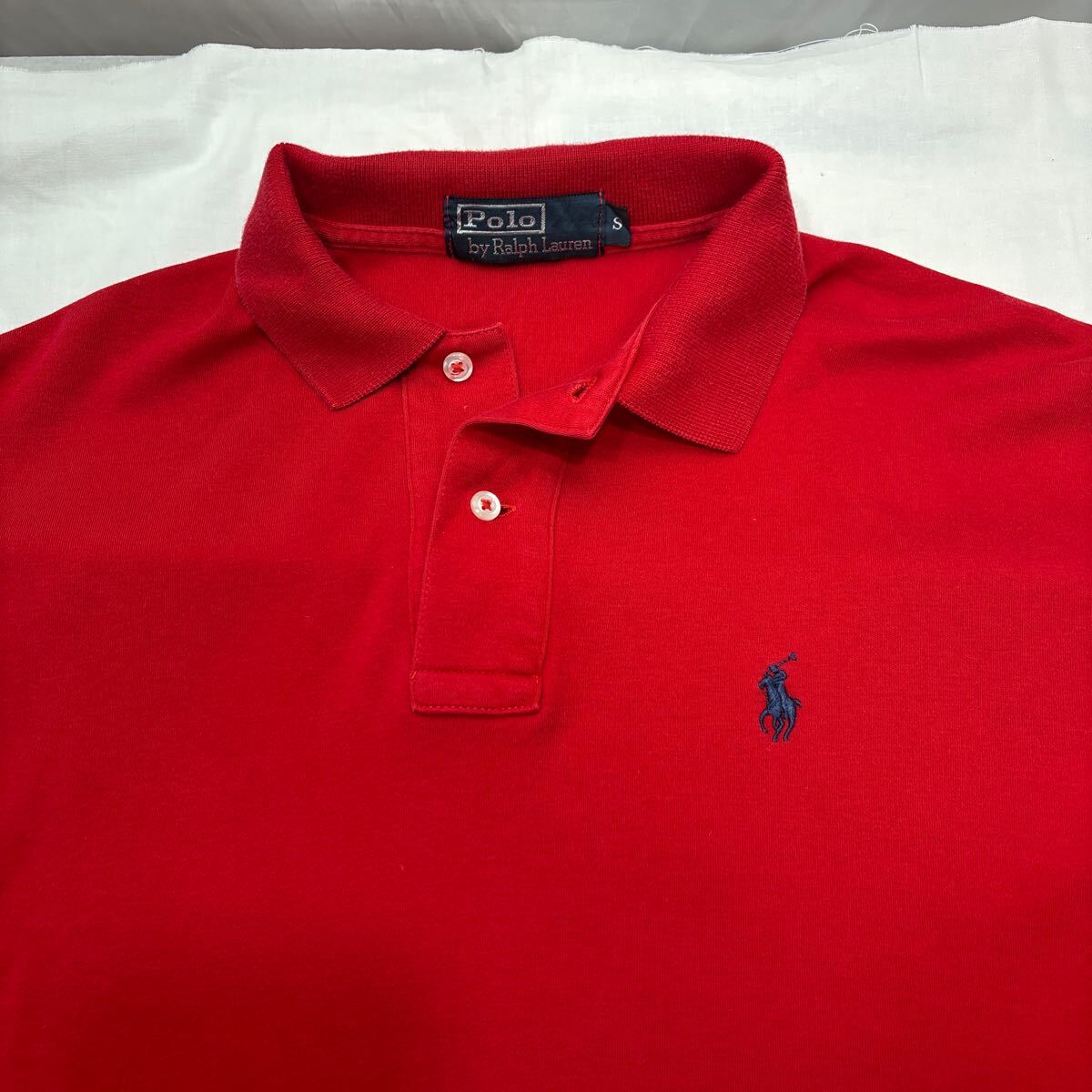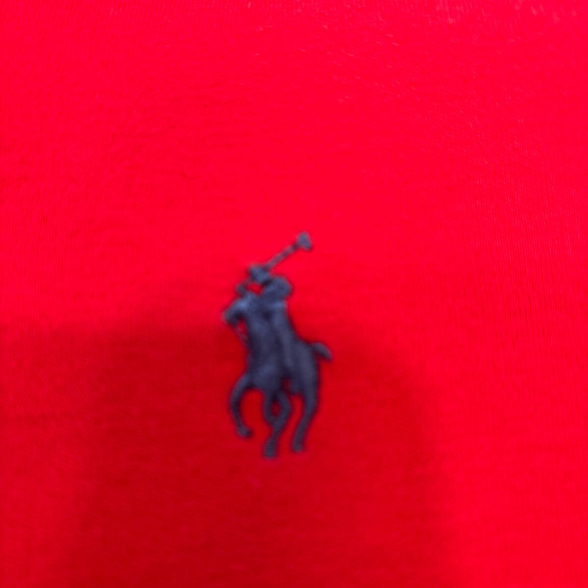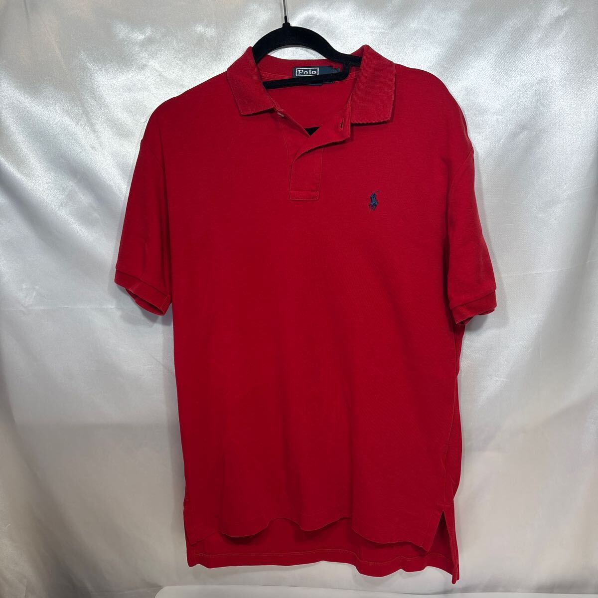 139♪USユーズド★ポロラルフローレン 半袖 ブランドメンズワンポイントロゴ ソフトコットンレッドUS-Sサイズ(使用感M-Lサイズ)