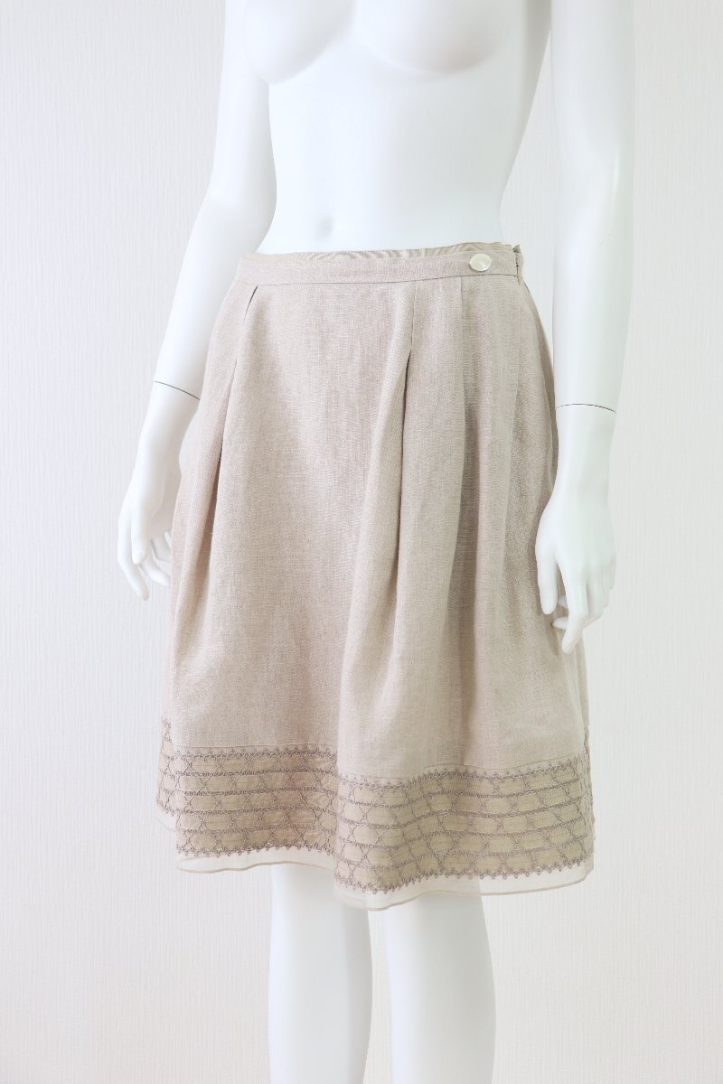 コメント | 裾のコード刺繍が素敵なタックフレアリネンスカートです。 |
