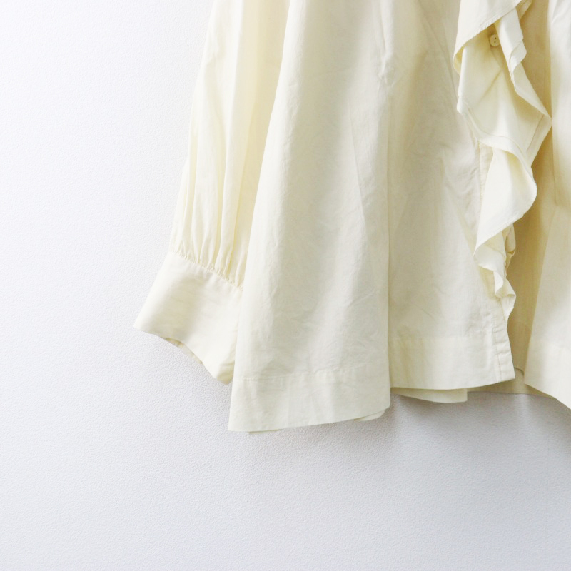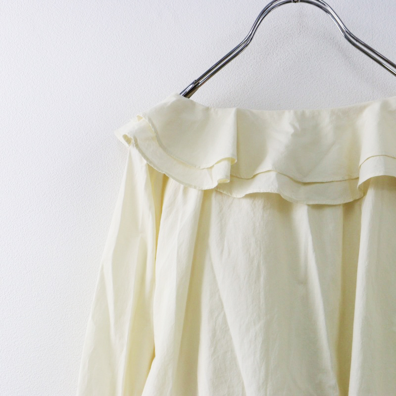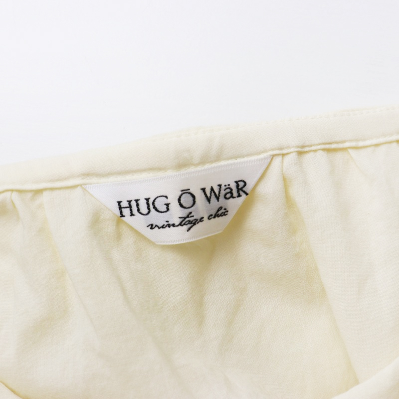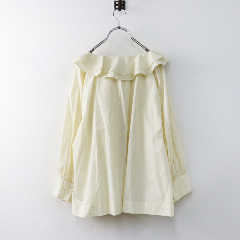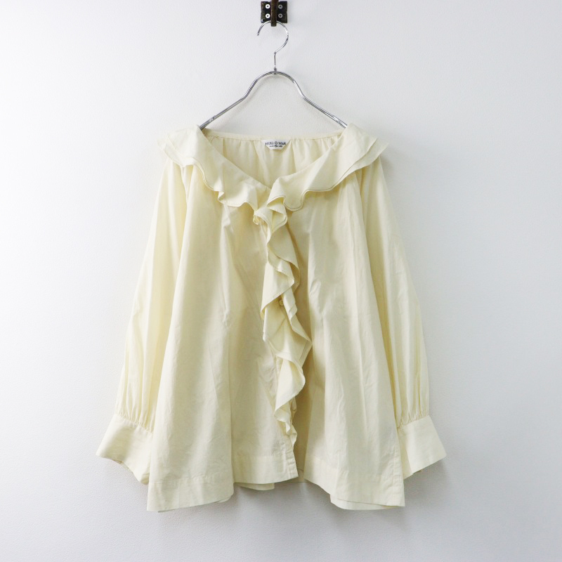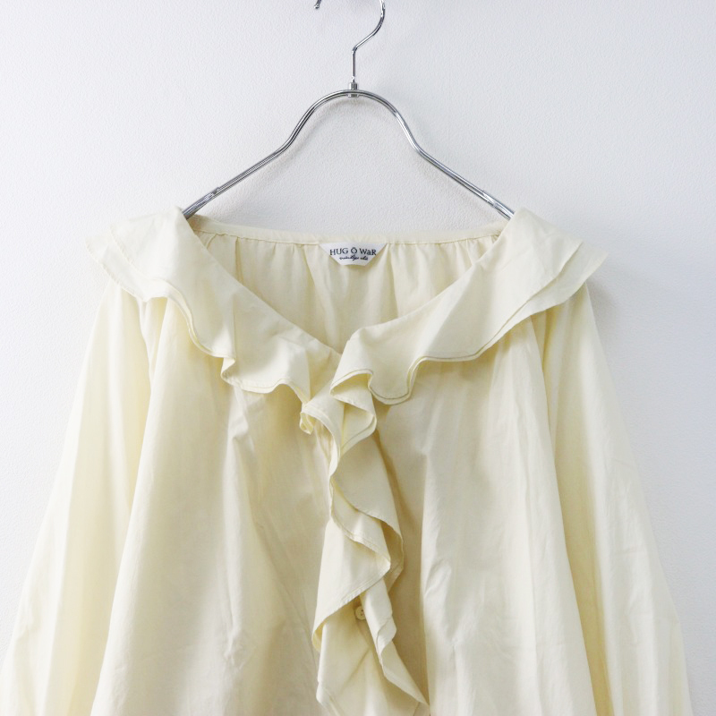 美品 ハグオーワー HUG O WaR コットン ダブルフリルカラーギャザースリーブ ブラウス F ライトベージュ/シャツ【2400014437287】