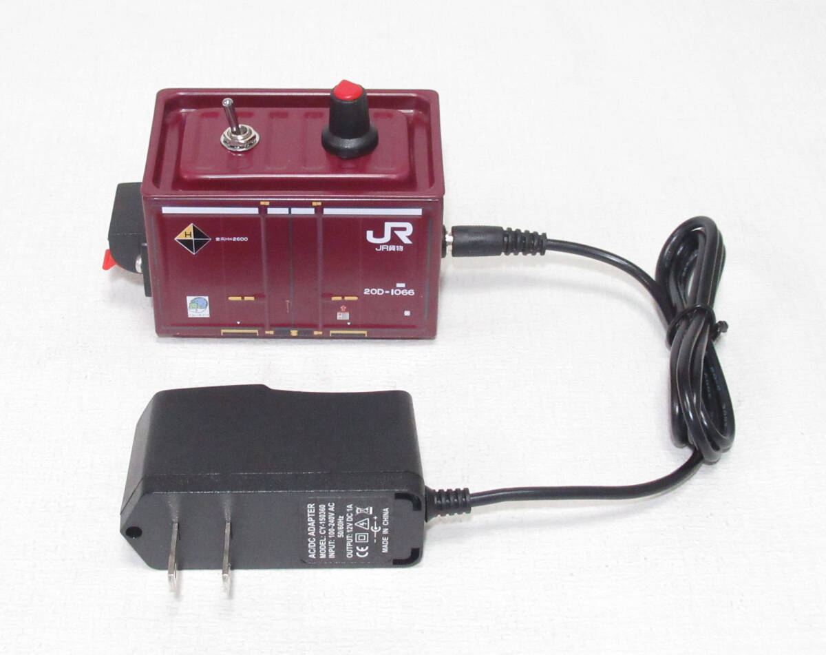 側面にACアダプターの差し込み口、レールへの電源出力ターミナルがあります。