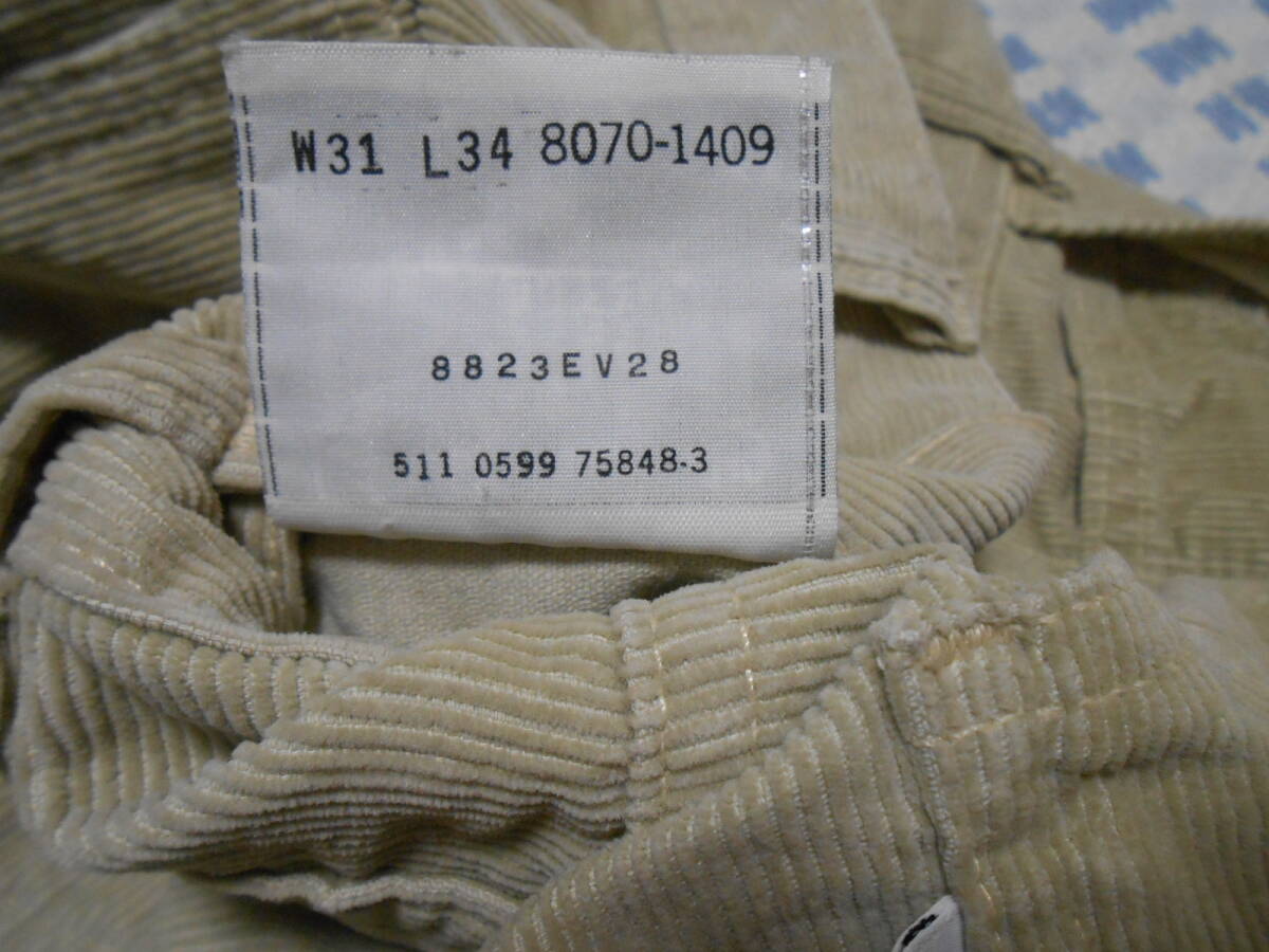 米国製!リーバイス 8070-1409 コーデュロイ ビックE ベージュ W31・L34 501XX アメリカ製 薄茶 90年代 519 517 646