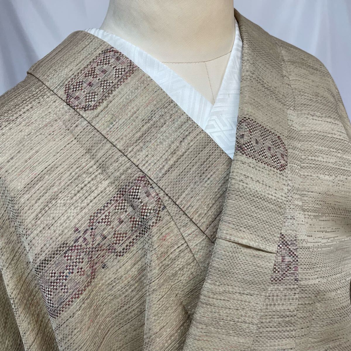 ・花織の上質で素敵な紬のお着物です。 ・衿に着用汚れ、左前下に茶色いシミがあります。(写真 9枚目) ・まだまだ着用していただけますので、おすすめのお着物です。 ・お安く出品致しますので、是非この機会にいかがでしょうか。 |