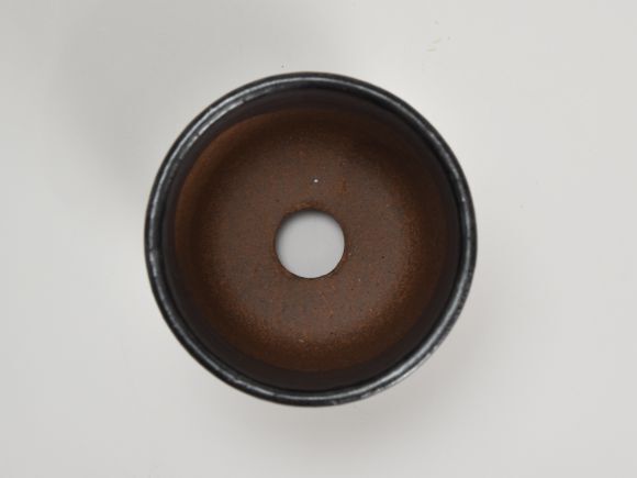釉薬のかかっている場所とかかっていない場所のコントラストがかっこいい 黒マットミニ鉢 3号