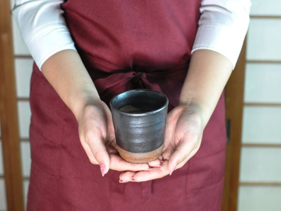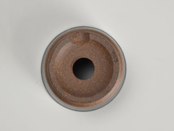 湯呑サイズのミニ鉢です。下の方の四分の一は釉薬がなく、栗のような色の切り替えが面白い鉢です。