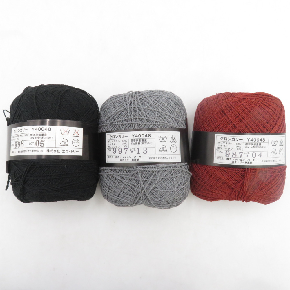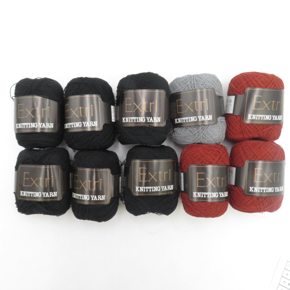 | 毛糸 エクトリー クロンカリー Y40048 約20g(約260m)×10玉セットブラック/ レッド/グレー系 未使用品 |