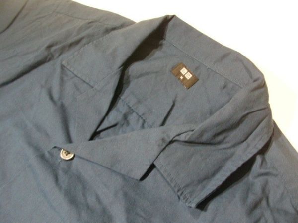 ssy5759 ユニクロ UNIQLO 半袖 開襟シャツ ■ 無地アロハ  ■ ダークネイビー系  綿混素材 Mサイズ カジュアル