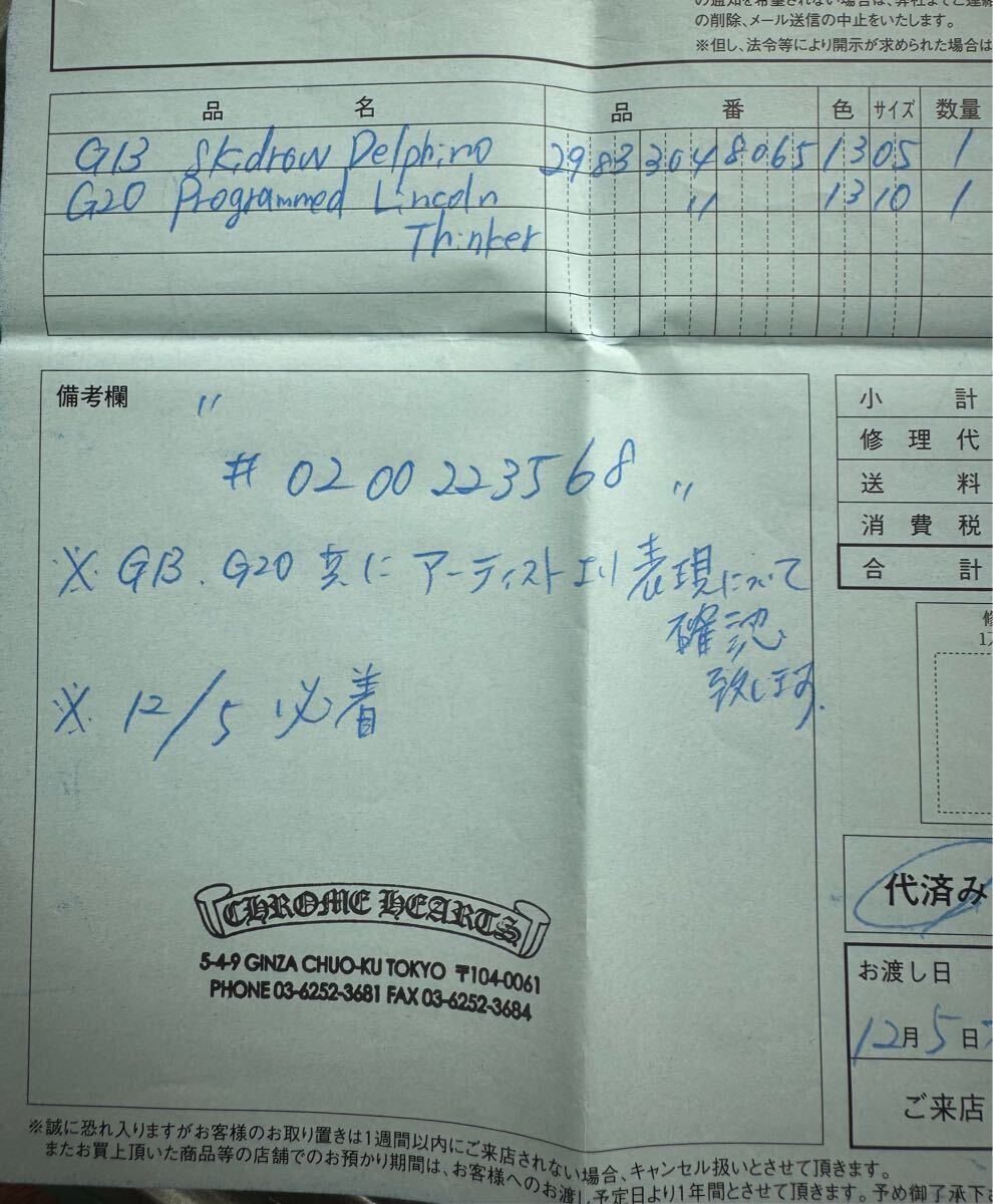 開催初日に別に出品しているG20作品と一緒に購入した為、画像のレシート原本はお渡しできません。コピーでのお渡しとなります。