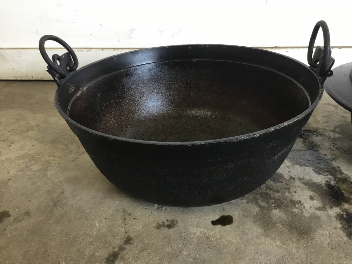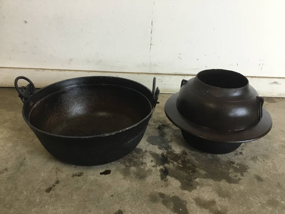 △ y 岐阜発/ アルミ製/ 大鍋/ 鉄羽釜/ 2個セット/ 鍋395mm/ 羽釜150mm/ 釜戸炊き/ レトロ/ 現状品/ R7.6/7 △ |