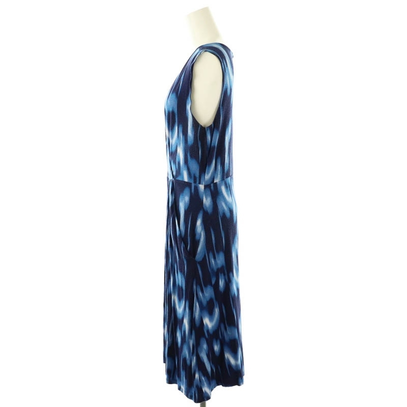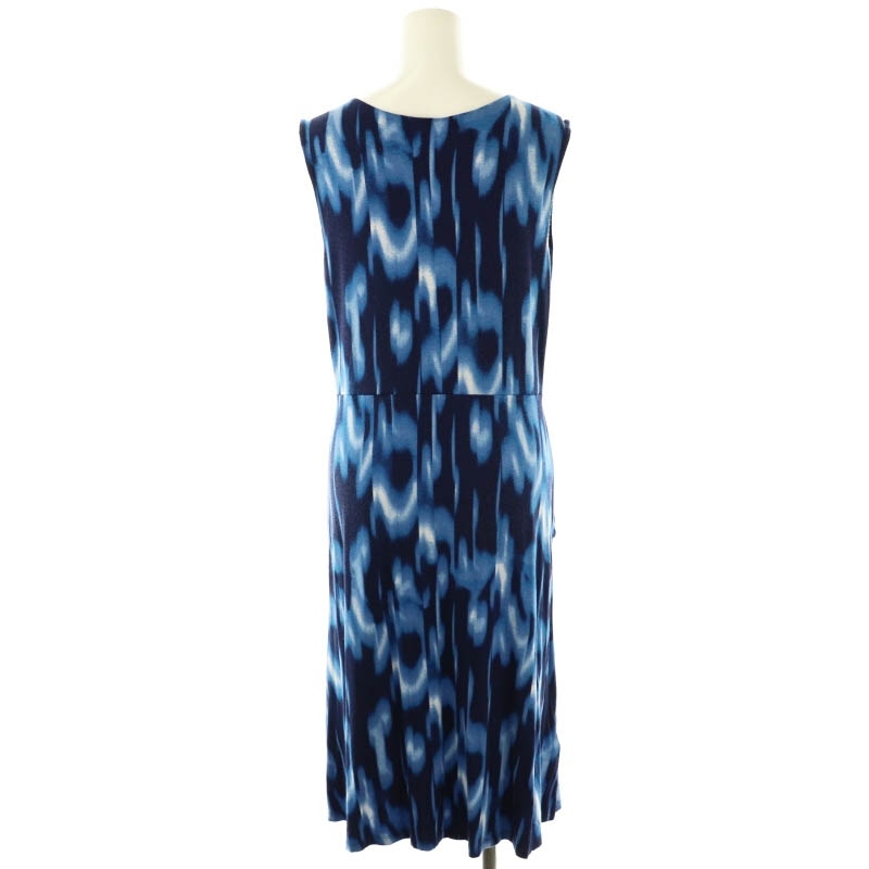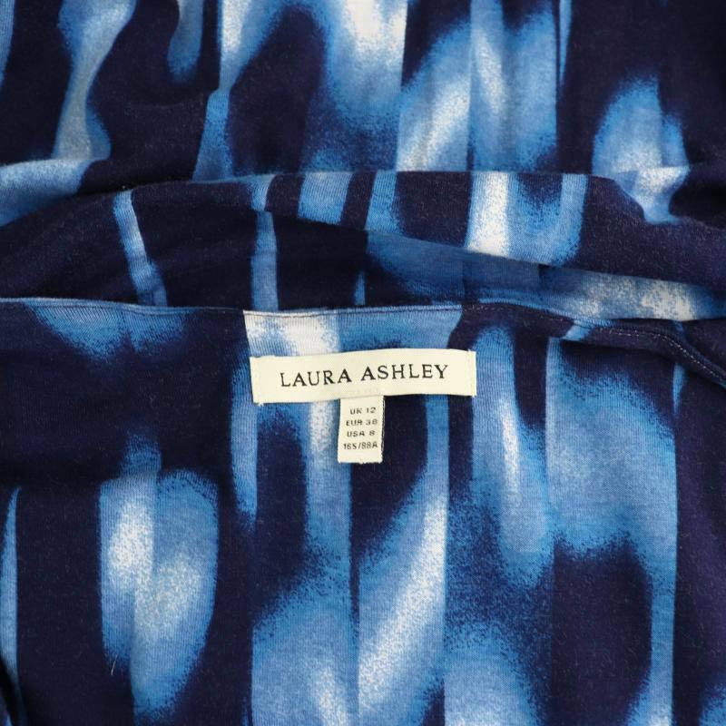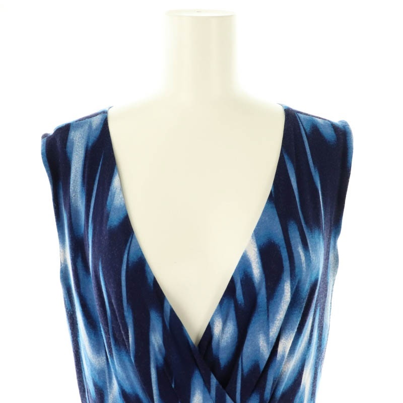 ローラアシュレイ LAURA ASHLEY 総柄 カシュクールワンピース ミモレ ロング ノースリーブ 38 青 ブルー /AT ■OS レディース
