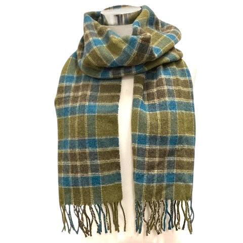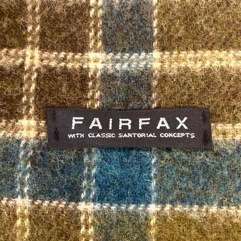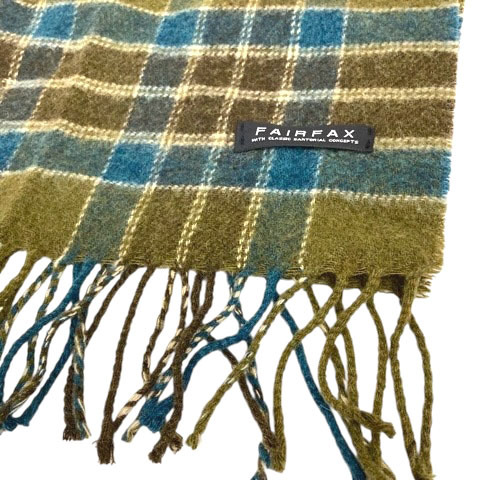 フェアファックス FAIRFAX マフラー ストール ウール フリンジ チェック 緑 モスグリーン マルチカラー メンズ