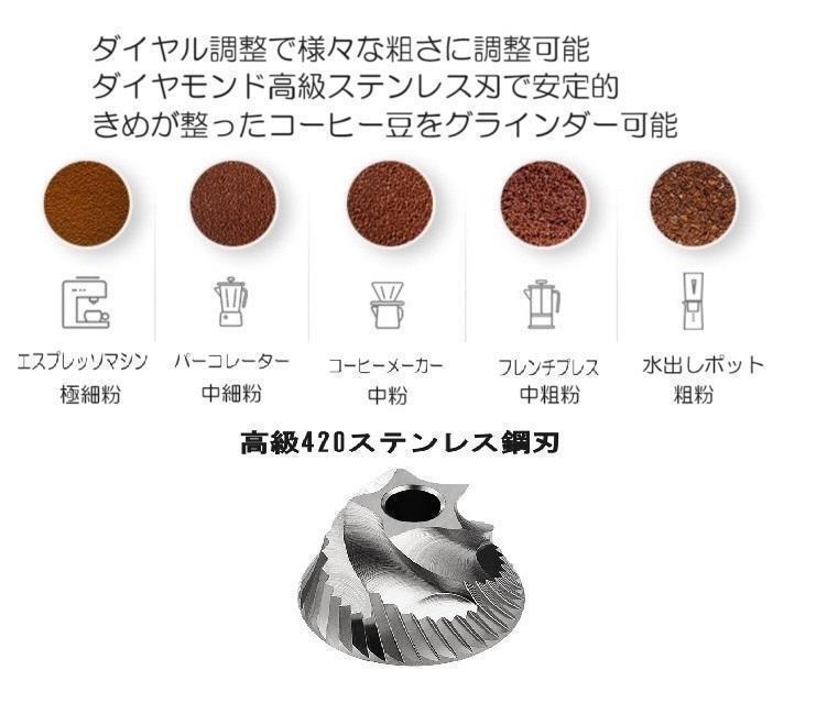 新ダイヤモンドステンレス鋼スパイクカットされた2軸CNC切断のシャープな切断をします エスプレッソに対応し挽く際に熱を加えず、コーヒー豆のオリジナルの味を損なうことはありません。