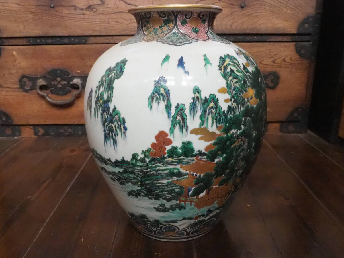 古道具の市で見つけた素山九谷白磁色絵花瓶です。